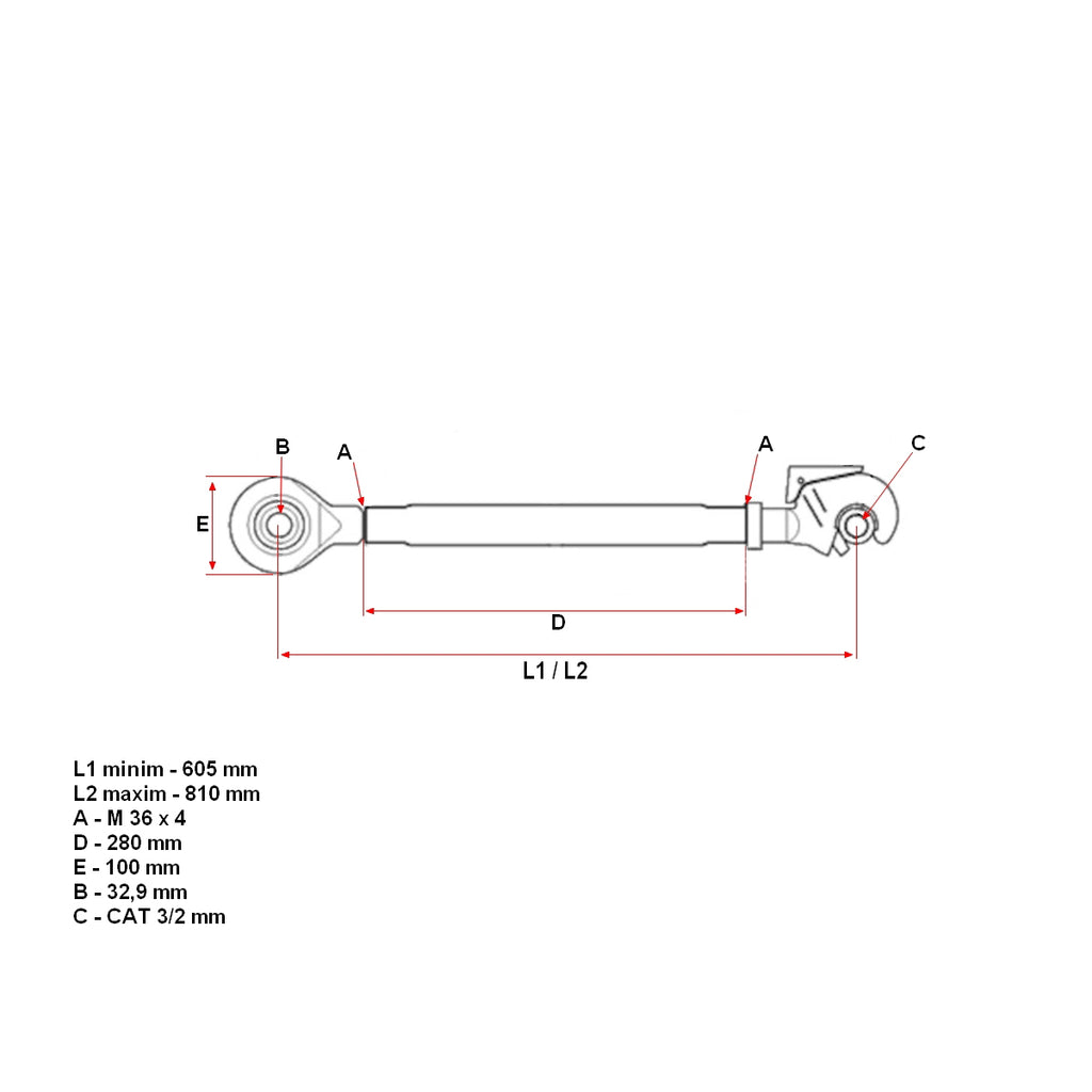 Ez a központi rúd a CAT 3 kategóriába tartozik, és kifejezetten a John Deere 7500-7600 sorozatú gépekhez készült, biztosítva a stabil és megbízható működést a mezőgazdasági munkák során.