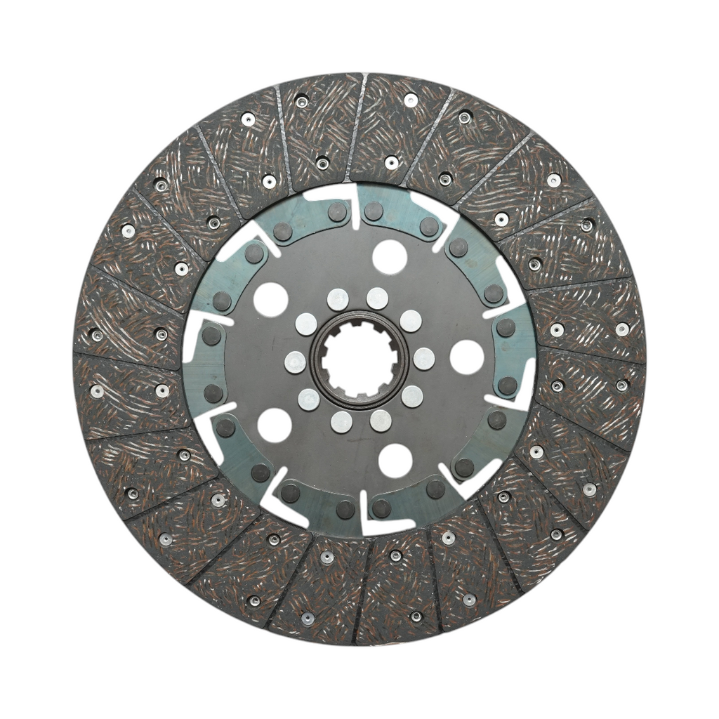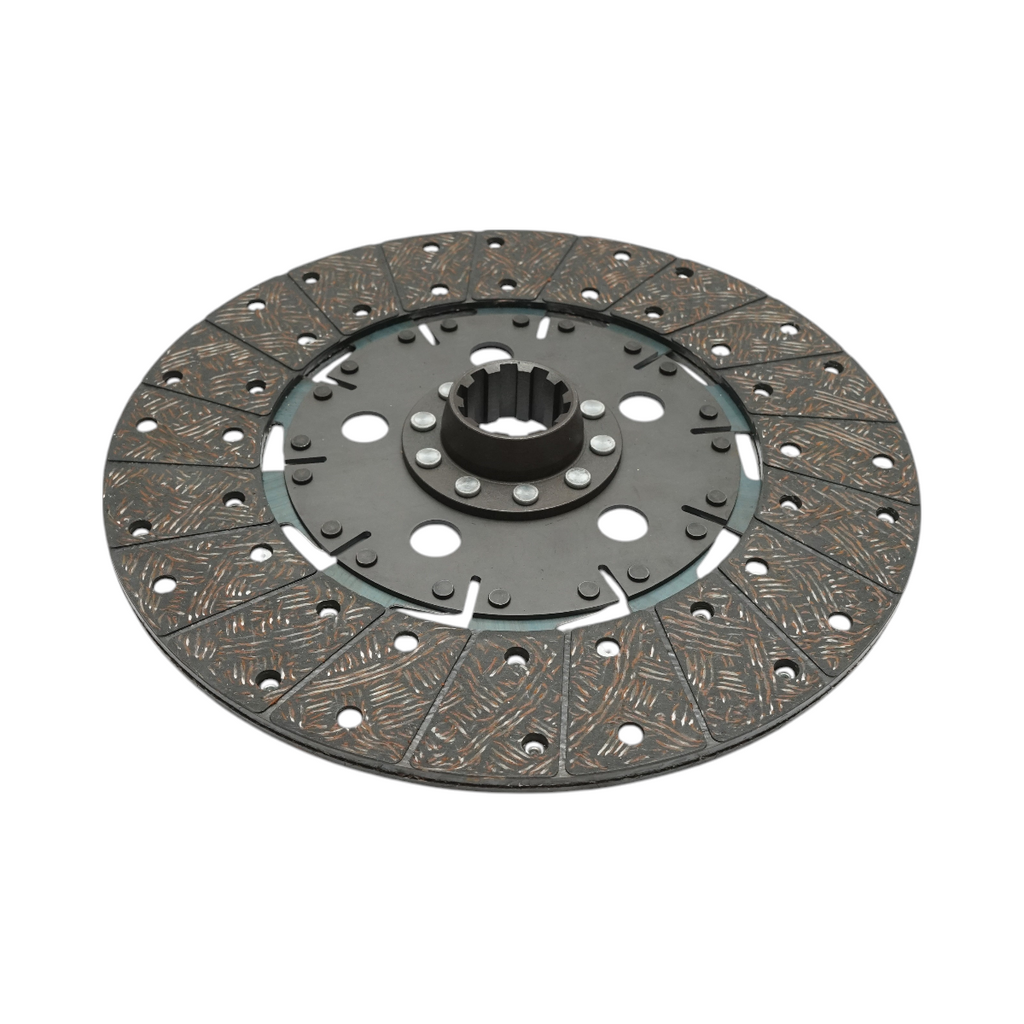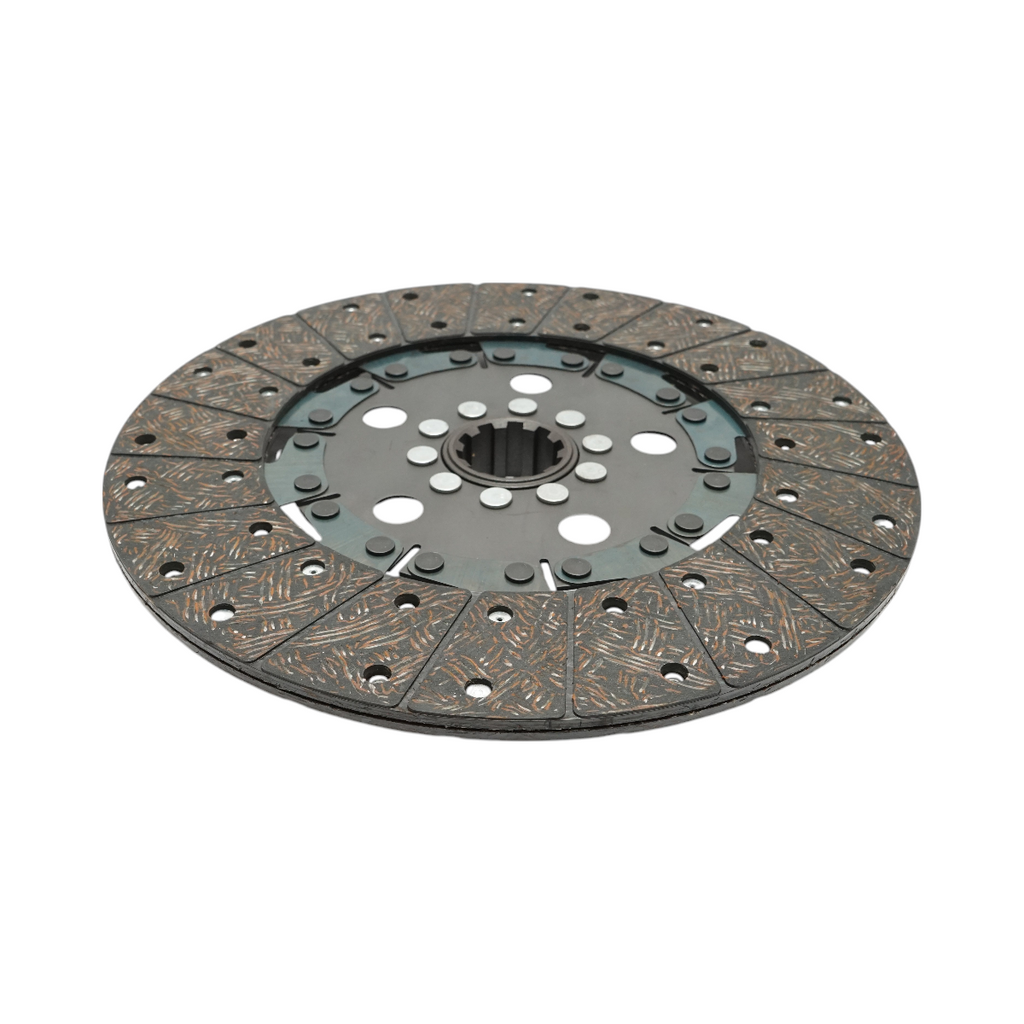 KUPLUNGTÁRCSA NEW HOLLAND, FORD GÉPEKHEZ, Ø330 MM, Z=10, OEM KÓD: E3NN7550DA, 333008710, 1864600304, 333003210, 82011594, 83937184, 87554548, FNN7550A, 81826679, 81864816, 82004599, 82011593, 83919100, 83983642 mezőgazdasági traktorok tengelykapcsoló rendszeréhez használható alkatrész. A tárcsa külső átmérője 330 mm, belső átmérői 39 és 45 mm, 10 bordás kialakítással. Az adott OEM számok alapján több New Holland TS sorozatú és széles körű Ford traktorral kompatibilis, különféle motorváltozatokkal.
