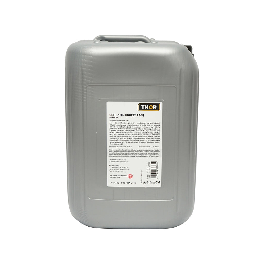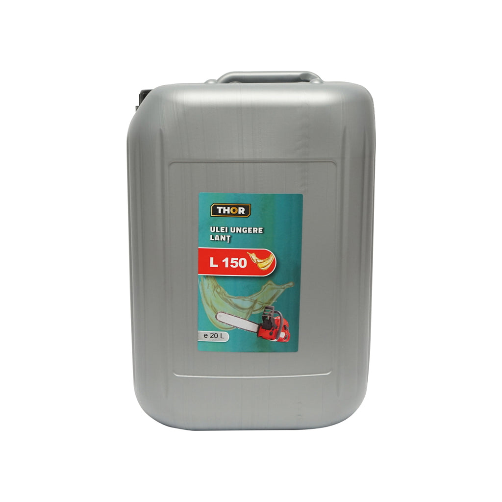 LÁNCKENŐ OLAJ THOR L 150, 20L ásványi alapú kenőolaj, amely közepes igénybevételű csapágyak, szerszámgépek, beállítószerkezetek és mechanikus hajtások kenésére használható. A termék továbbá alkalmazható kétütemű motoroknál is, üzemanyaggal keverve, a gyártói előírásoknak megfelelően.