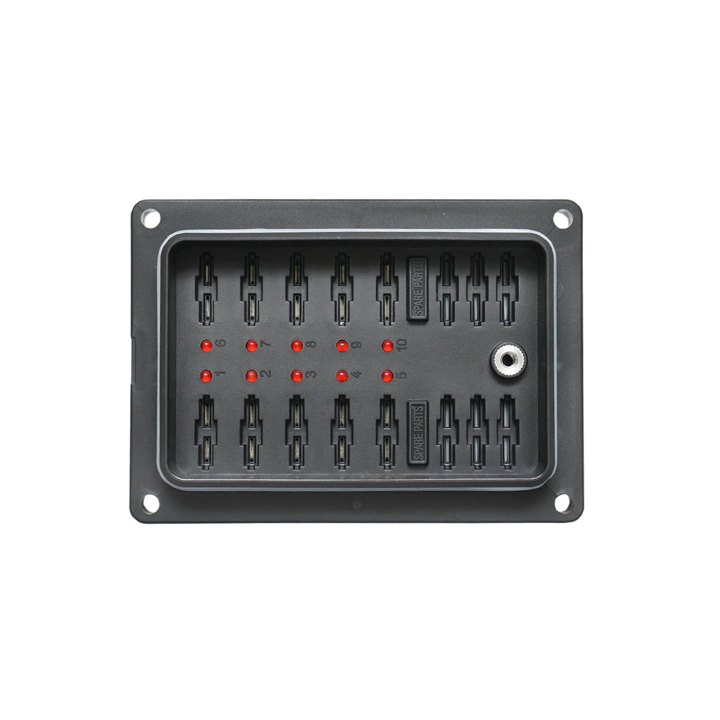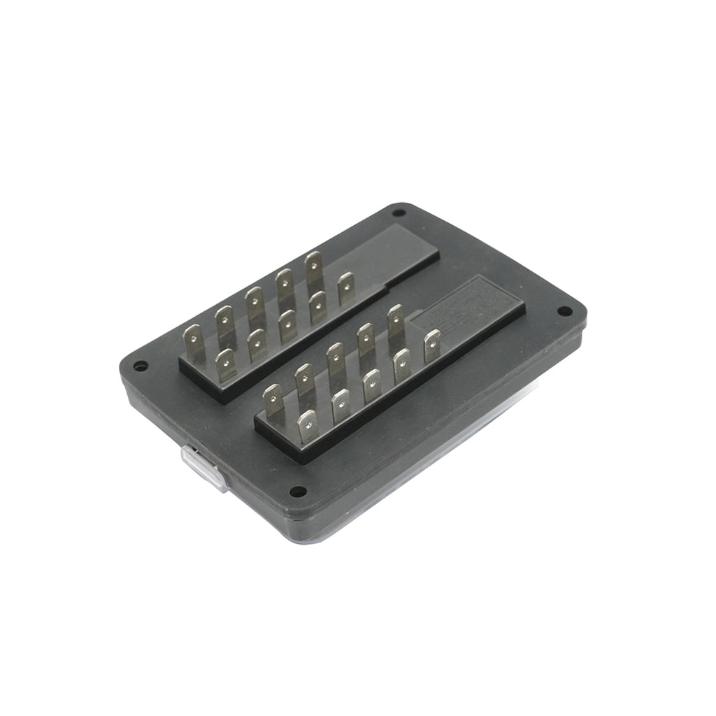 LAPOS BIZTOSÍTÉK ELOSZTÓ, 10 ÁGÚ, BRECKNER GERMANY típusú biztosítéktábla 10 különálló áramkör csatlakoztatását teszi lehetővé síkbiztosítékokkal (mini vagy standard). Elektromos rendszerek védelmére szolgál mezőgazdasági, ipari vagy gépjárműves alkalmazásokban.