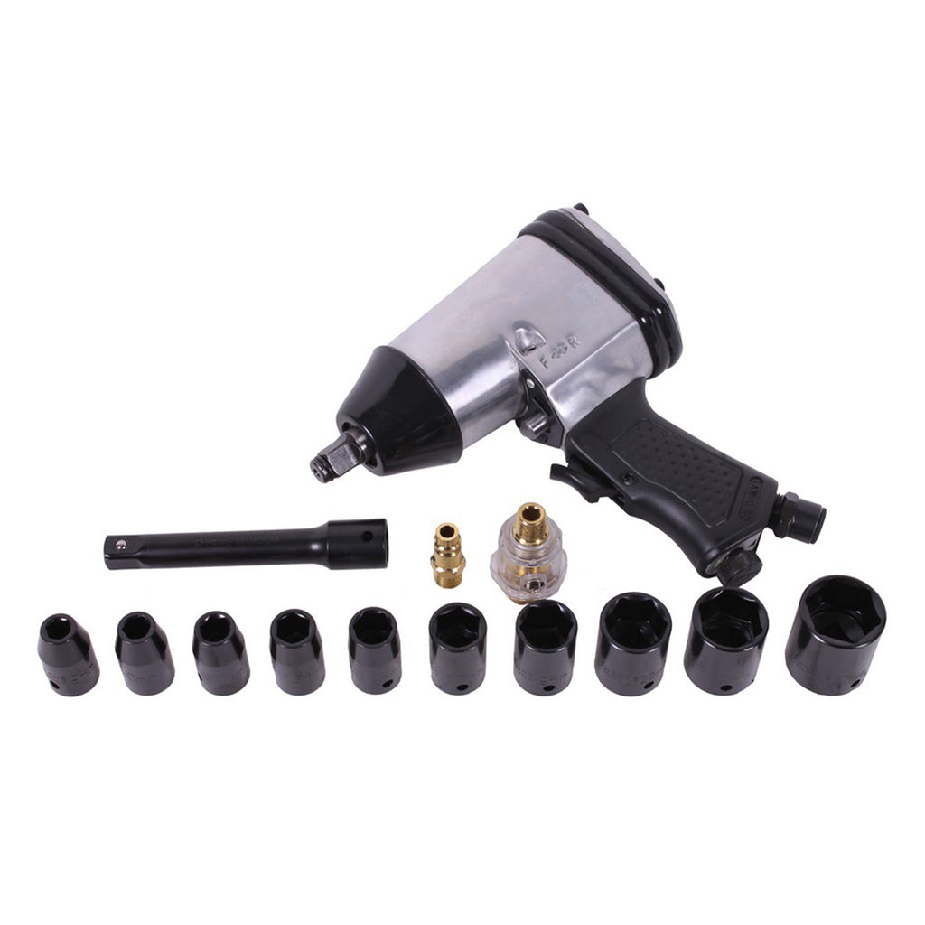 A szerszám mérete 205 x 200 mm, súlya pedig 4,8 kg. A készlet 10 darab ütvecsavarozó dugókulcsot tartalmaz (méretek: 9, 10, 11, 13, 14, 17, 19, 22, 24 és 27 mm), valamint egy 1/2"-os, 5" hosszúságú hosszabbító szárat, egy hatszögkulcsot, egy csatlakozót (nippel), egy mini olajozót, egy olajtartályt és egy fújt műanyag tárolódobozt.