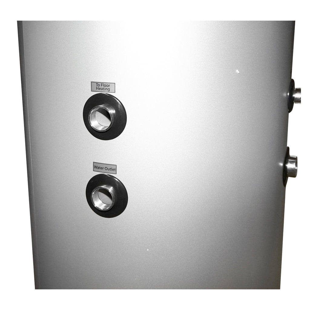 A MELEGVÍZ-TÁROLÓ PUFFER TARTÁLY, 150L, NYOMÁS ALATTI, 3 KW, HŐSZIVATTYÚHOZ, MÉRET: 470X1470 MM, SPRSUN egy 150 literes, nyomás alatti melegvíz-tároló, amely hőszivattyús rendszerekhez lett kialakítva. Az integrált 3 kW-os elektromos fűtőbetét kiegészítő fűtési lehetőséget biztosít. A tartály többféle csatlakozási lehetőséggel van ellátva, padlófűtéshez és használati melegvíz-ellátáshoz egyaránt alkalmas.