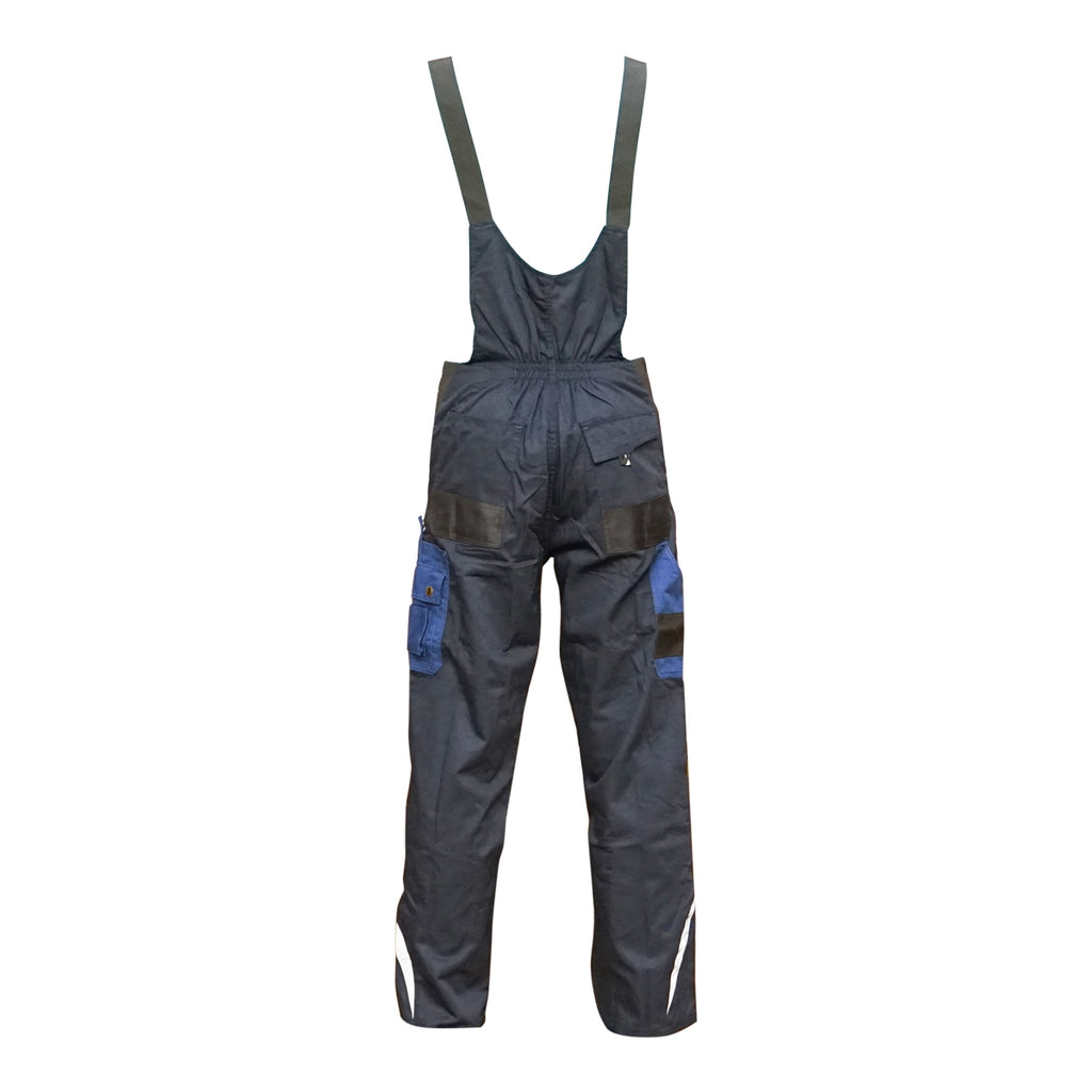 MELLRÉSZES MUNKÁSNADRÁG (KANTÁROS NADRÁG), POLIÉSZTER ÉS PAMUT ANYAGBÓL, SÖTÉTKÉK (NAVY), L MÉRET, BRECKNER GERMANY munkavégzéshez használható kantáros nadrág. Az anyagösszetétel 65% poliészter és 35% pamut, anyagsűrűsége 245 g/m². A termék színe sötétkék (albastru navy) és világoskék (albastru royal) kombinációjú, mérete L.