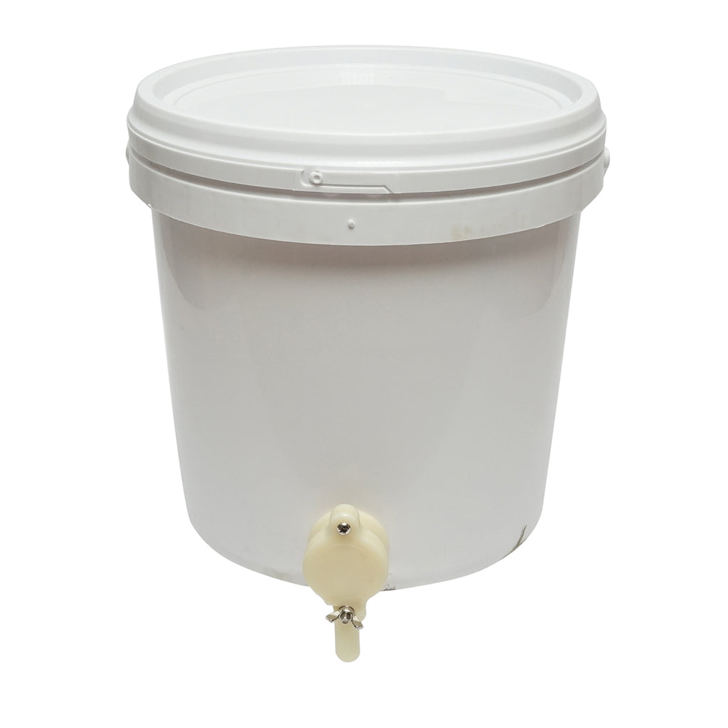 MŰANYAG MÉZLETÖLTŐ TARTÁLY, 20 LITER, CSAPPAL a méhészetben használt eszköz, amely a méz tárolására és adagolására szolgál. A tartály műanyagból készült, csappal ellátva a könnyű ürítés érdekében. A 20 literes kapacitás lehetővé teszi nagyobb mennyiségű méz kezelését. A tartály fehér színű.