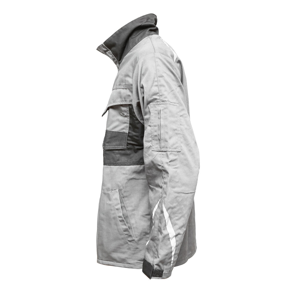 MUNKADZSEKI POLIÉSZTER ÉS PAMUT KEVERÉKBŐL, SZÜRKE-FEKETE, M MÉRET, BRECKNER GERMANY munkavédelmi dzseki, 35% pamut és 65% poliészter anyagösszetétellel. Anyagsűrűsége 245 g/m², színe szürke és fekete kombinációja. Méret: M.