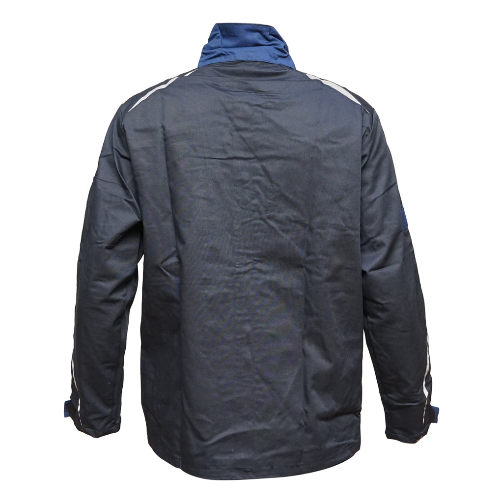 MUNKADZSEKI, POLIÉSZTER-PAMUT KEVERÉK, SÖTÉTKÉK, S MÉRET, BRECKNER GERMANY munkavédelmi dzseki, 35% pamut és 65% poliészter anyagösszetétellel. Anyagsűrűsége 245 g/m², színe sötétkék (navy) és királykék kombinációja. Méret: S.