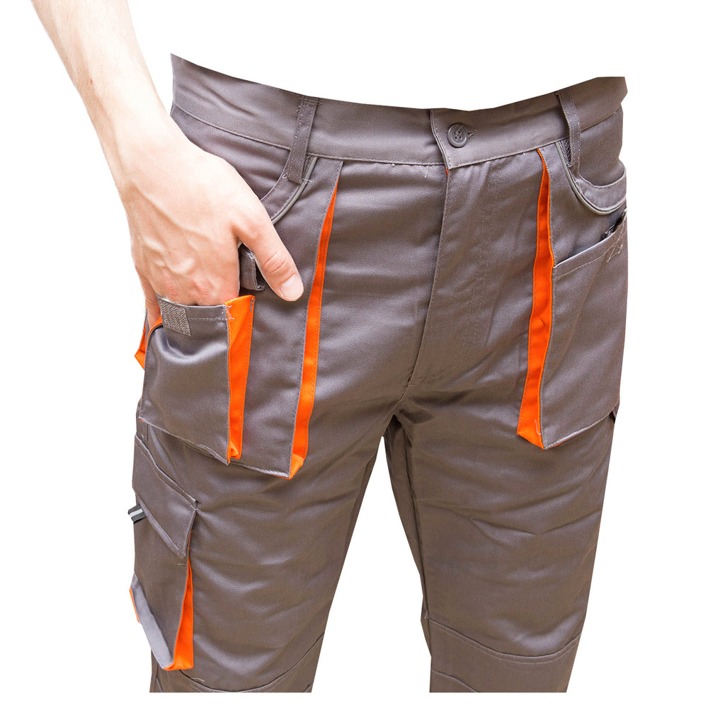 Munkanadrág poliészterrel és pamuttal – Szürke/narancssárga, 52-es méret, Breckner Germany