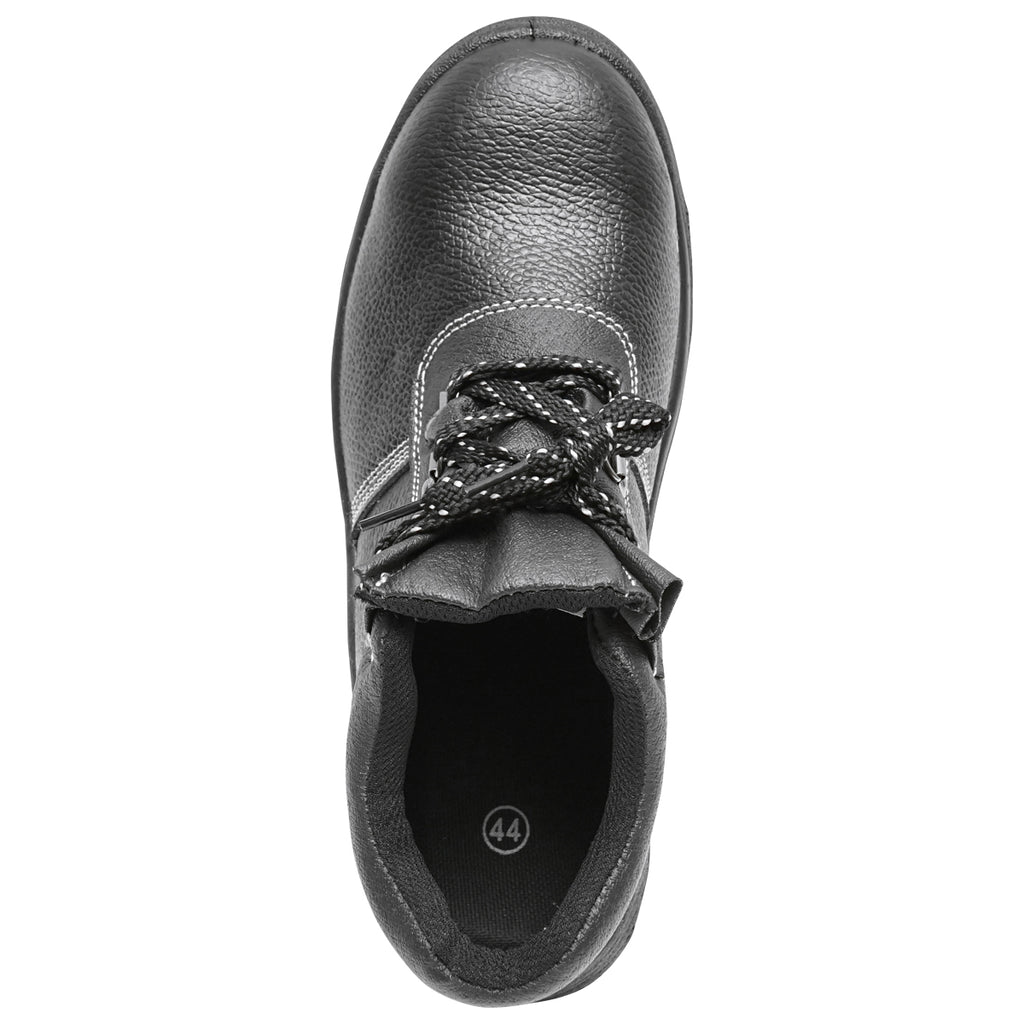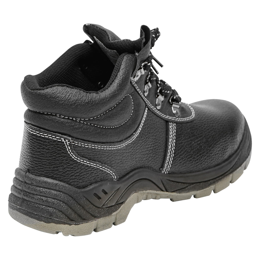 MUNKAVÉDELMI BAKANCS, 44-ES MÉRET, ACÉL LÁBUJJVÉDŐVEL ÉS TALPLEMEZZEL, TÍPUS: 5003 acél orrmerevítővel és acél talpbetéttel ellátott munkavédelmi bakancs, amely 200 Joule ütközési energiáig nyújt védelmet, és fém talplemezének köszönhetően átszúrásálló. Talpa nagy sűrűségű anyagból készült, sarokrésze ütéscsillapítóval ellátott. Az antistatikus és csúszásmentes talp ellenáll olajoknak, üzemanyagoknak és vegyi anyagoknak.