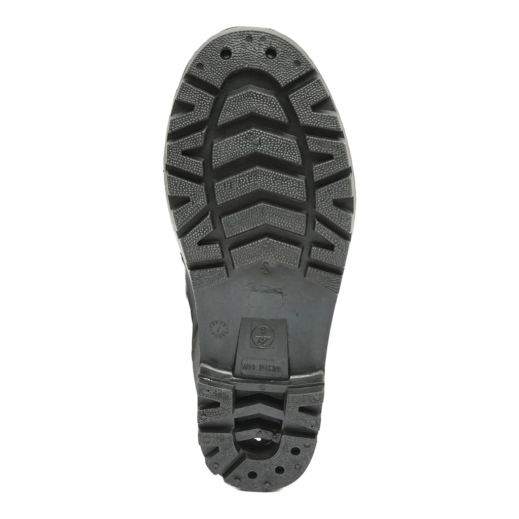 MUNKAVÉDELMI CSIZMA, ZÖLD PVC, ACÉL LÁBUJJVÉDELEMMEL, 41-ES MÉRET, 005GB lábvédelemre szolgáló egyéni védőeszköz. A csizma acél lábujjvédővel rendelkezik, amely akár 200 Joule erőhatásnak is ellenáll. A nagy sűrűségű talp sarokrészben ütéselnyelő, csúszásgátló és antisztatikus kialakítású, valamint olajokkal, üzemanyagokkal és különféle vegyi anyagokkal szemben ellenálló.