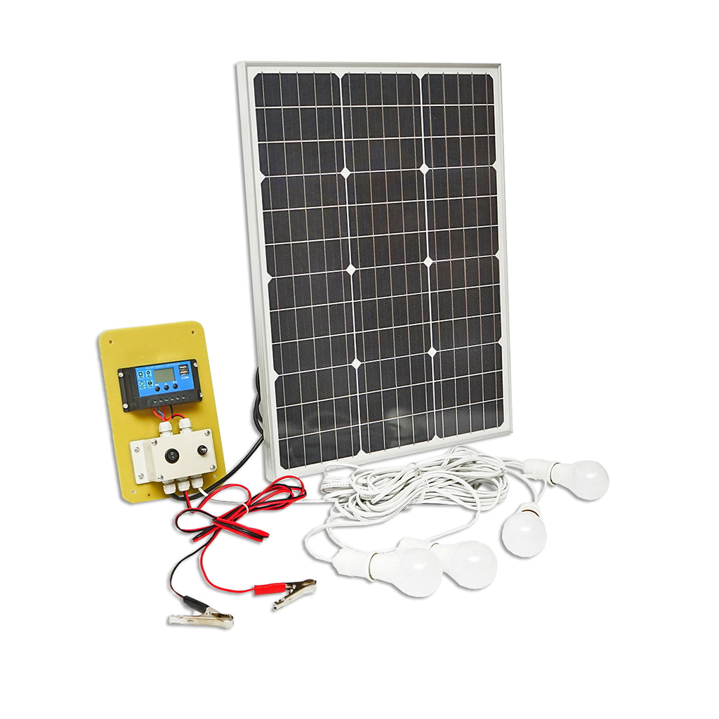 Napelemes szett 50W monokristályos panellel, 12V/17Ah akkumulátorral és 4 db 9W LED izzóval – Breckner Germany