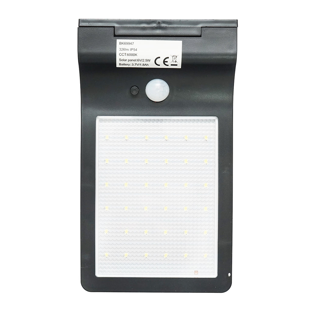 NAPELEMES LED LÁMPA 326 LM, 2.5W / 6V NAPELEMMEL, 3.7V / 1.8 AH AKKUMULÁTORRAL ÉS ALKONYKAPCSOLÓVAL, IP54, BRECKNER GERMANY kültéri világításra alkalmas eszköz. A lámpa 36 darab LED-del működik, fényárama 326 lumen, színhőmérséklete 6000 K. A beépített 3,7 V / 1,8 Ah akkumulátort a x2,5 W / 6 V teljesítményű napelem tölti. Az alkonykapcsoló automatikusan aktiválja a világítást sötétedéskor. A kompakt ABS ház IP54 védettségi szinttel rendelkezik.