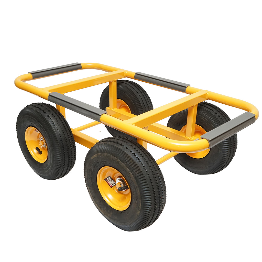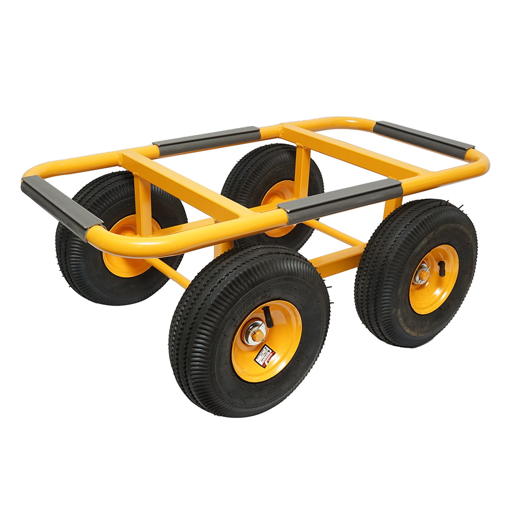 NÉGYKEREKŰ FÉM SZÁLLÍTÓKOCSI PNEUMATIKUS KEREKEKKEL, 750×380 MM, 250 MM ÁTMÉRŐJŰ KEREKEKKEL