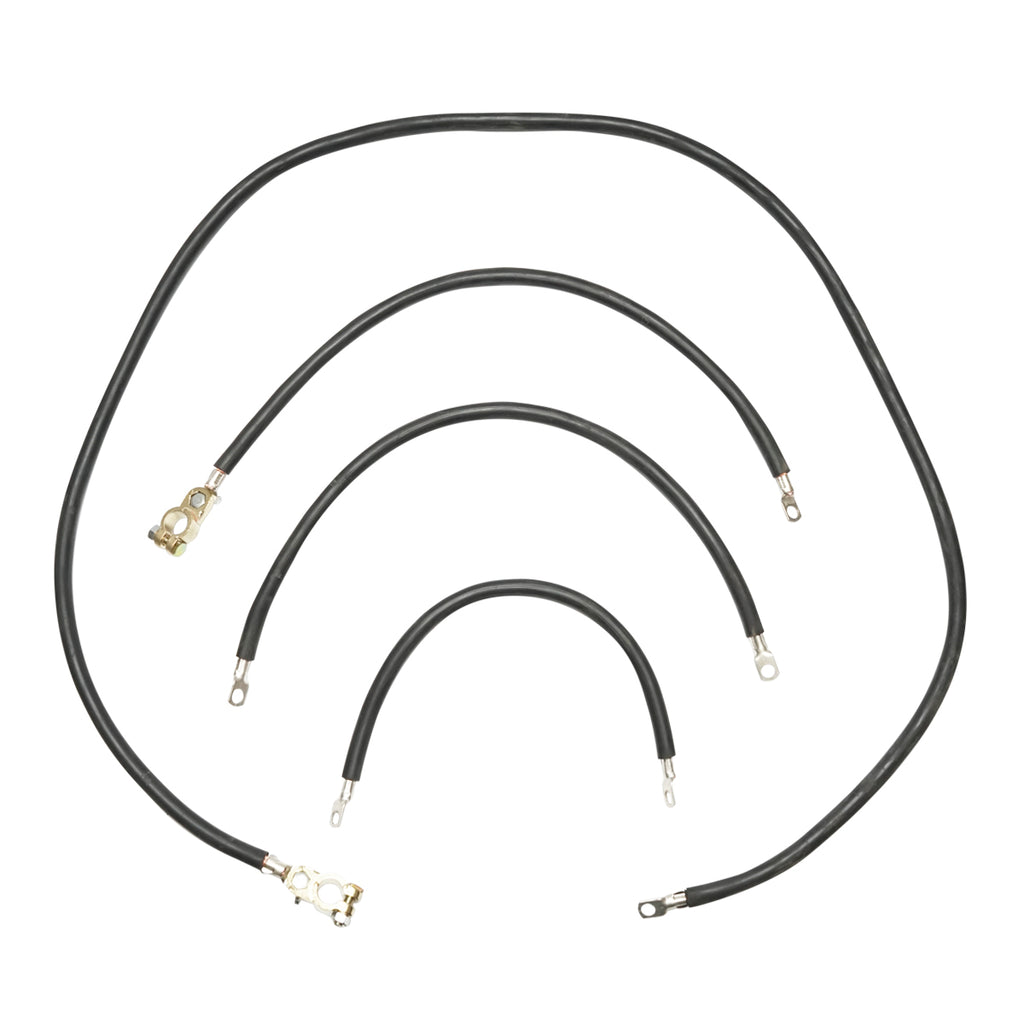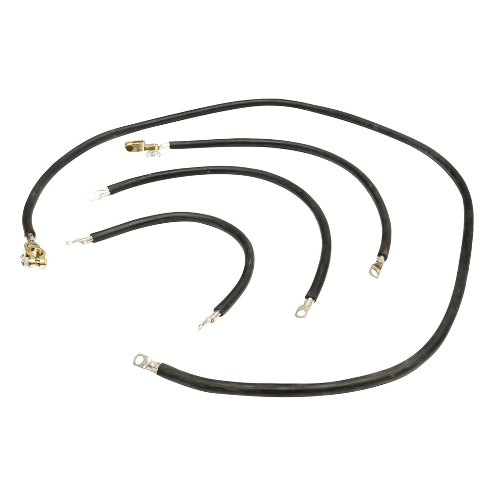 NEHÉZ KIVITELŰ KÁBELKÖTEG KÉSZLET PERKINS MOTOROS ERDEI TRAKTORHOZ BRECKNER GERMANY GYÁRTMÁNY sodrott réz kábelből készült, 35 mm átmérővel. A készlet az alábbi kábeleket tartalmazza: egy 180 cm hosszú, saruval és akkumulátor csatlakozóval ellátott kábel; egy 60 cm hosszú, saruval és akkumulátor csatlakozóval ellátott kábel; egy 60 cm hosszú, két sarus kábel; valamint egy 42 cm hosszú, két sarus kábel.