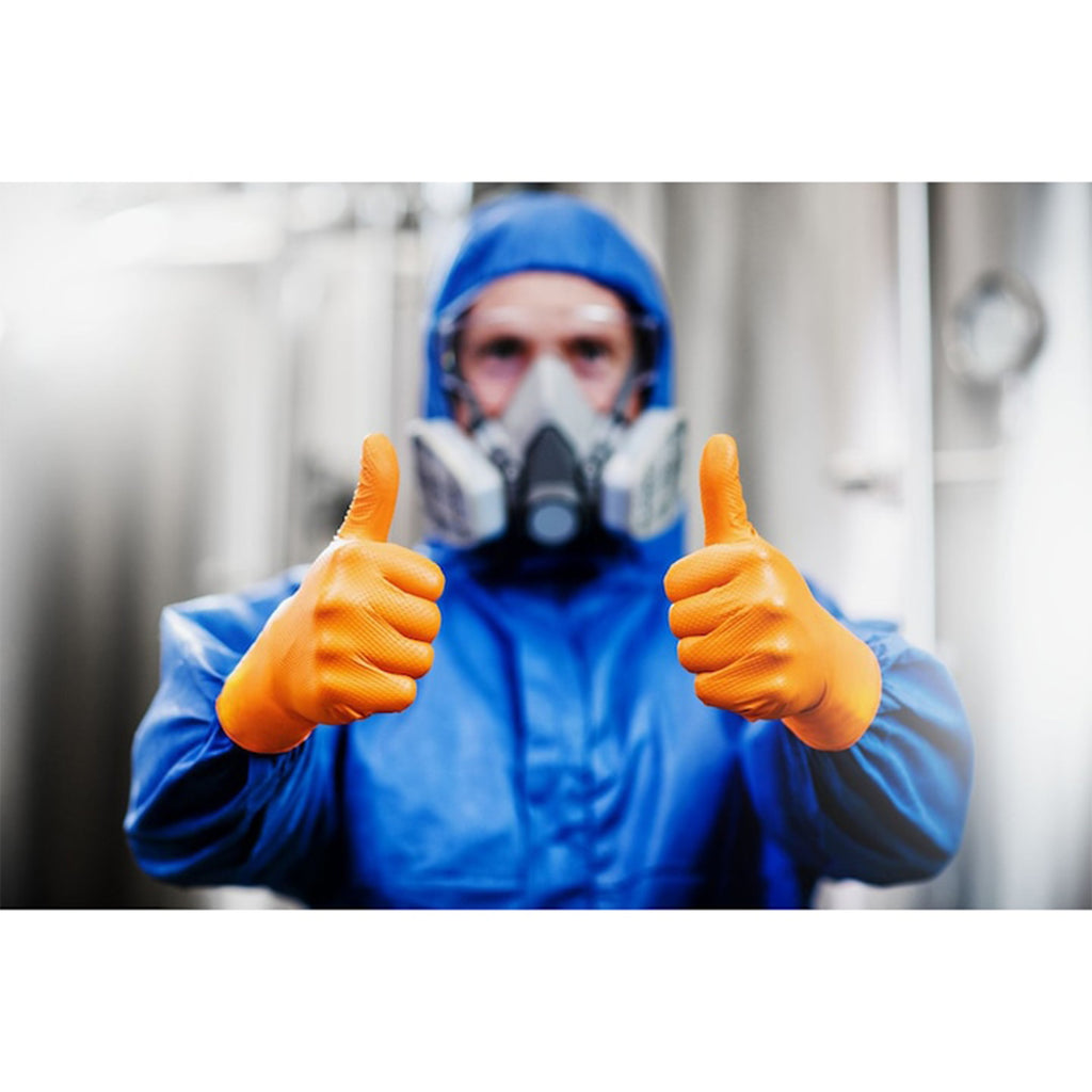 A NITRIL KESZTYŰ PREMIUM MERCATOR ONE BY ONE NARANCSSÁRGA M MÉRET 100 DB professzionális felhasználásra készültek, ahol fontos a magas szintű ellenállás vegyi anyagokkal, olajokkal és zsírokkal szemben. Nitrilből készülnek, latexmentesek, így érzékeny bőrre is alkalmasak, és megfelelnek az egyéni védőfelszerelésekre vonatkozó III. kategóriájú, B típusú szabványoknak.
