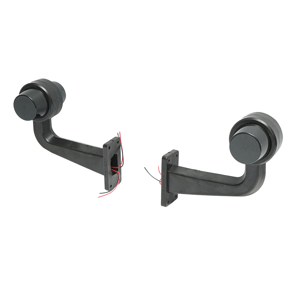 OLDALSÓ LED HELYZETJELZŐ LÁMPASZETT, KARRAL, 12–24V, FÜSTSZÍNŰ PIROS-FEHÉR, FR0157, BRECKNER GERMANY járművek oldalára szerelhető világítóegység, amely a közlekedés során a jármű méreteinek jelzésére szolgál. A készlet tartalmaz LED fényforrással ellátott lámpákat, 20 cm hosszúságú karral.