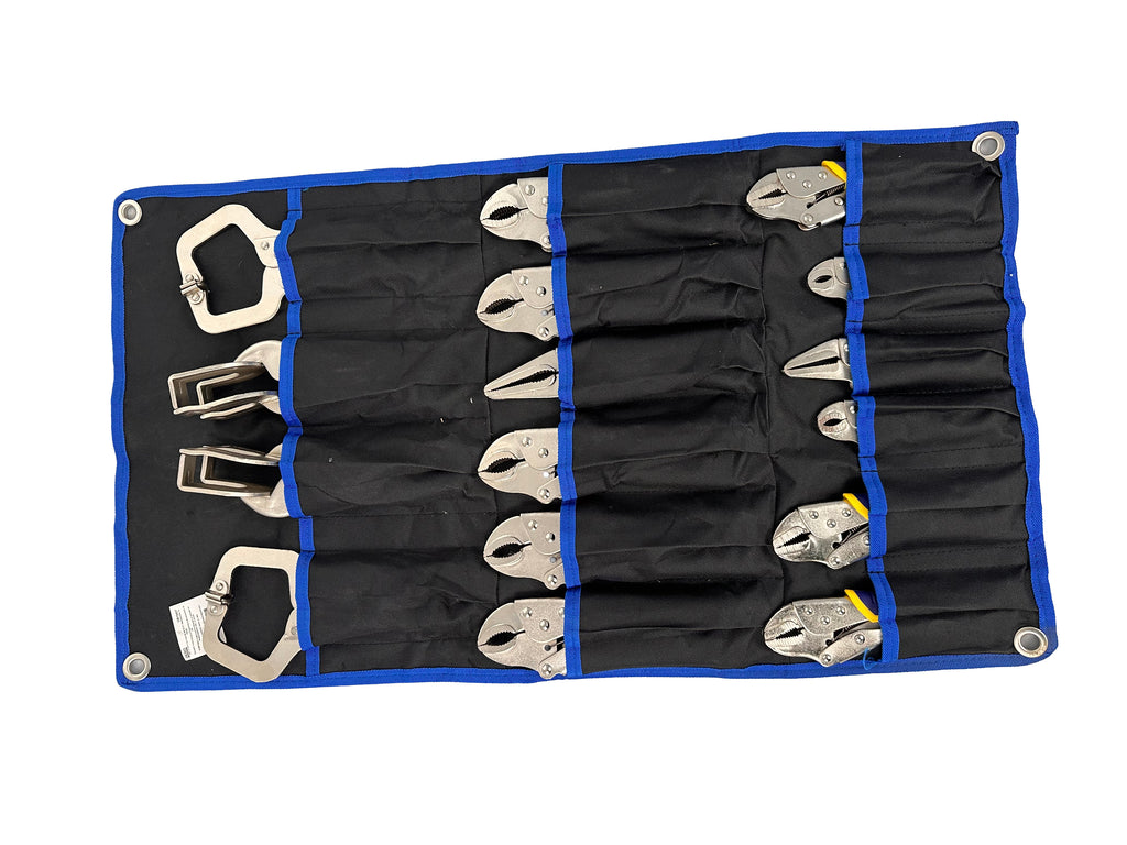 Az ÖNZÁRÓ FOGÓ KÉSZLET BÁDOGOS MUNKÁKHOZ 16 DB hasznos segítséget nyújt autószerelő műhelyekben. A készlet különböző méretű és kialakítású önzáró fogókat tartalmaz, amelyek különféle rögzítési és megfogási feladatokhoz alkalmasak.