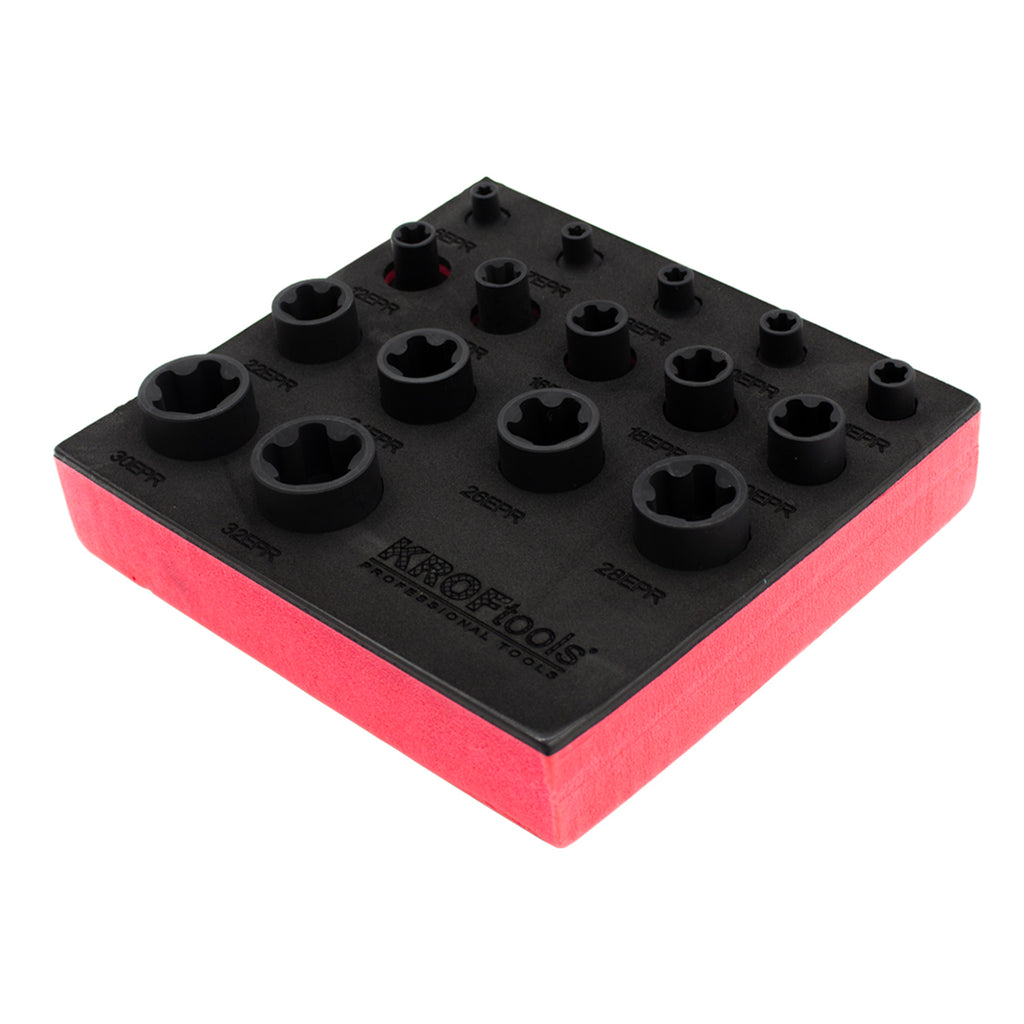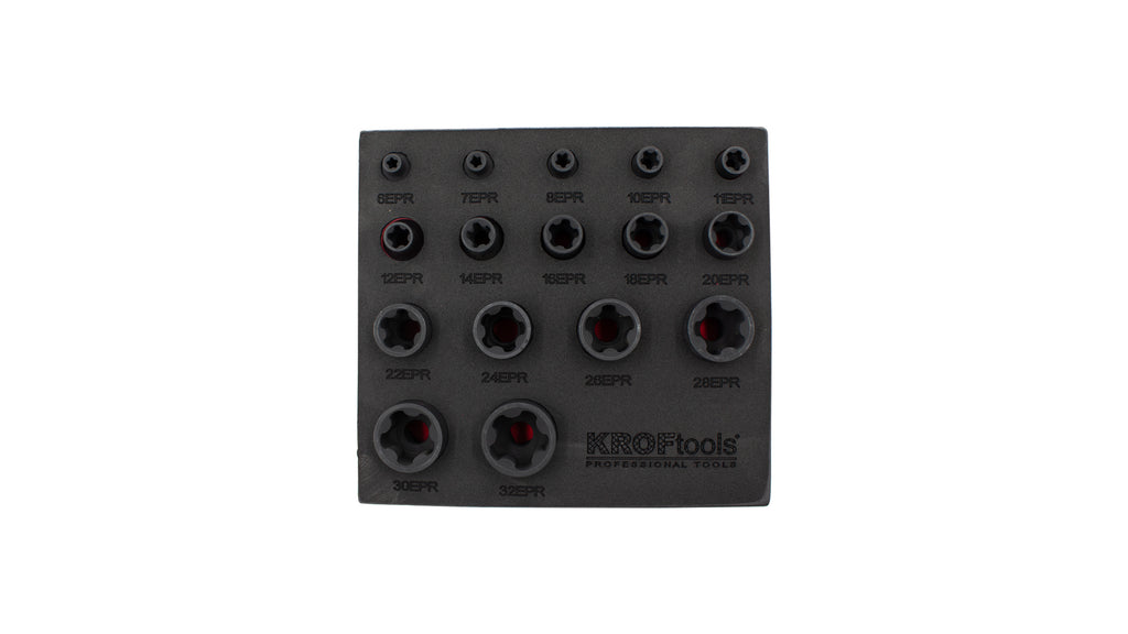 A készlet öt darab 1/4"-os behajtású és 25 mm hosszú kulcsot tartalmaz: 6EPR, 7EPR, 8EPR, 10EPR, 11EPR; öt darab 3/8"-os behajtású és 37 mm hosszú kulcsot: 12EPR, 14EPR, 16EPR, 18EPR, 20EPR; és hat darab 1/2"-os, 45 mm hosszúságú kulcs: 22EPR, 24EPR, 26EPR, 28EPR, 30EPR, 32EPR.