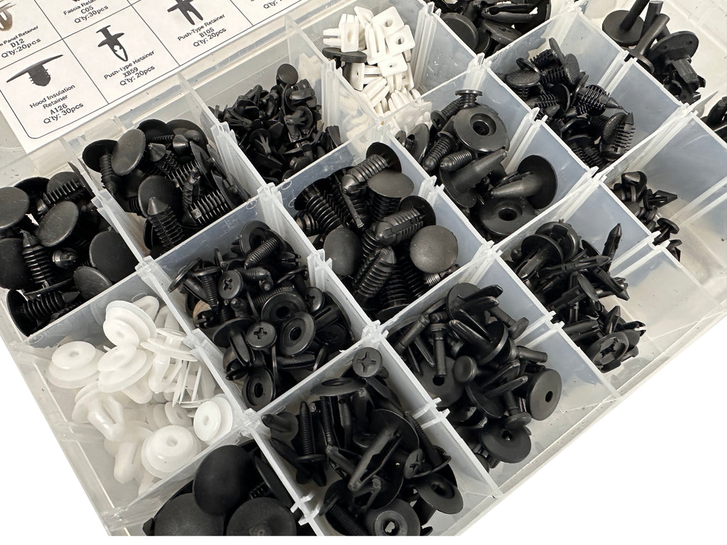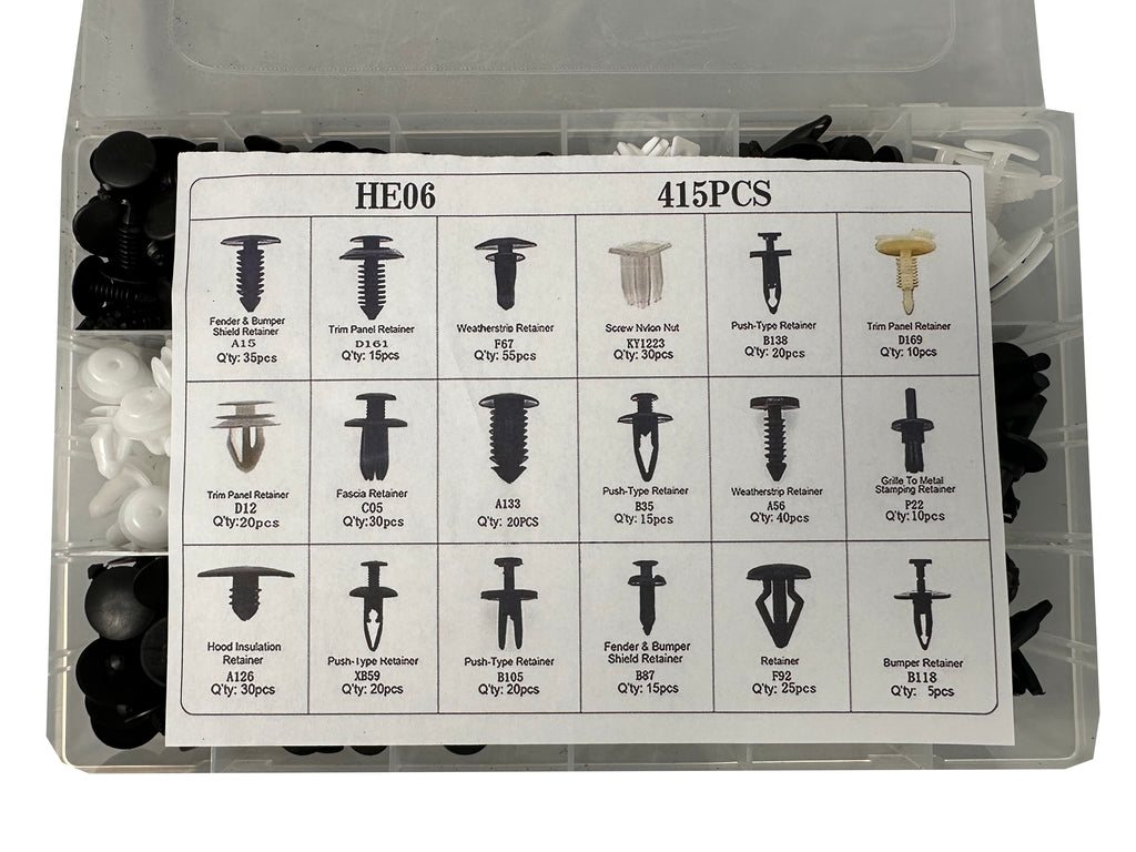 Ez a PATENT KÉSZLET - FORD - 415 DB tartós műanyagból készült, és a jármű belső és külső elemeinek, burkolatainak biztonságos és megbízható rögzítésére szolgál.