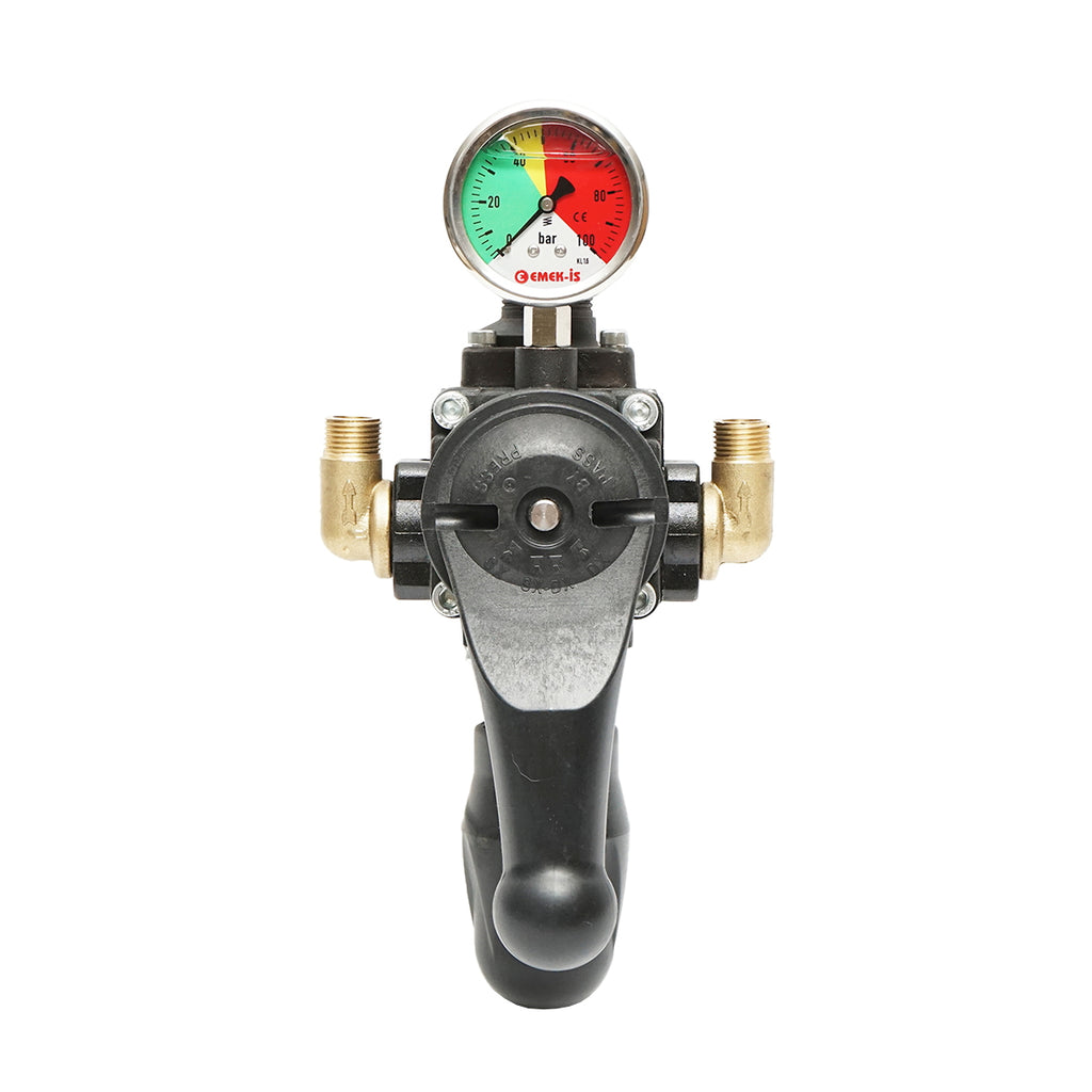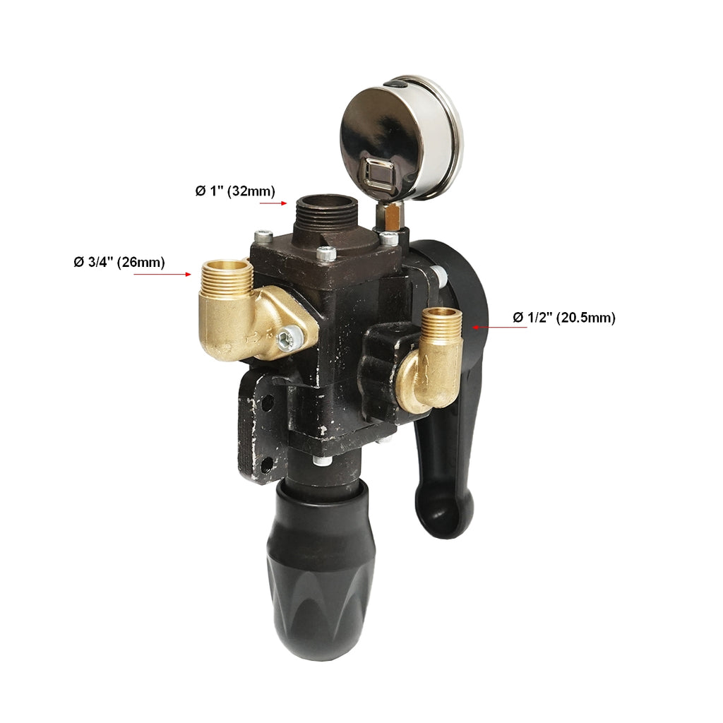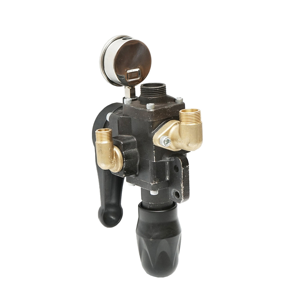 Fémből készült háromágú elosztó beépített glicerin manométerrel – gyomirtó permetezőhöz