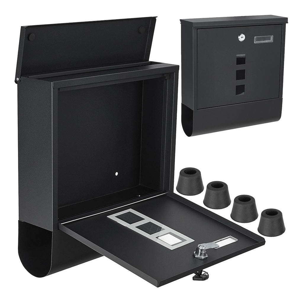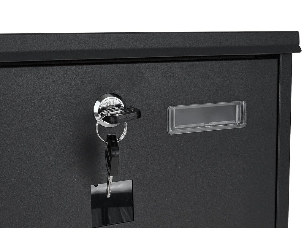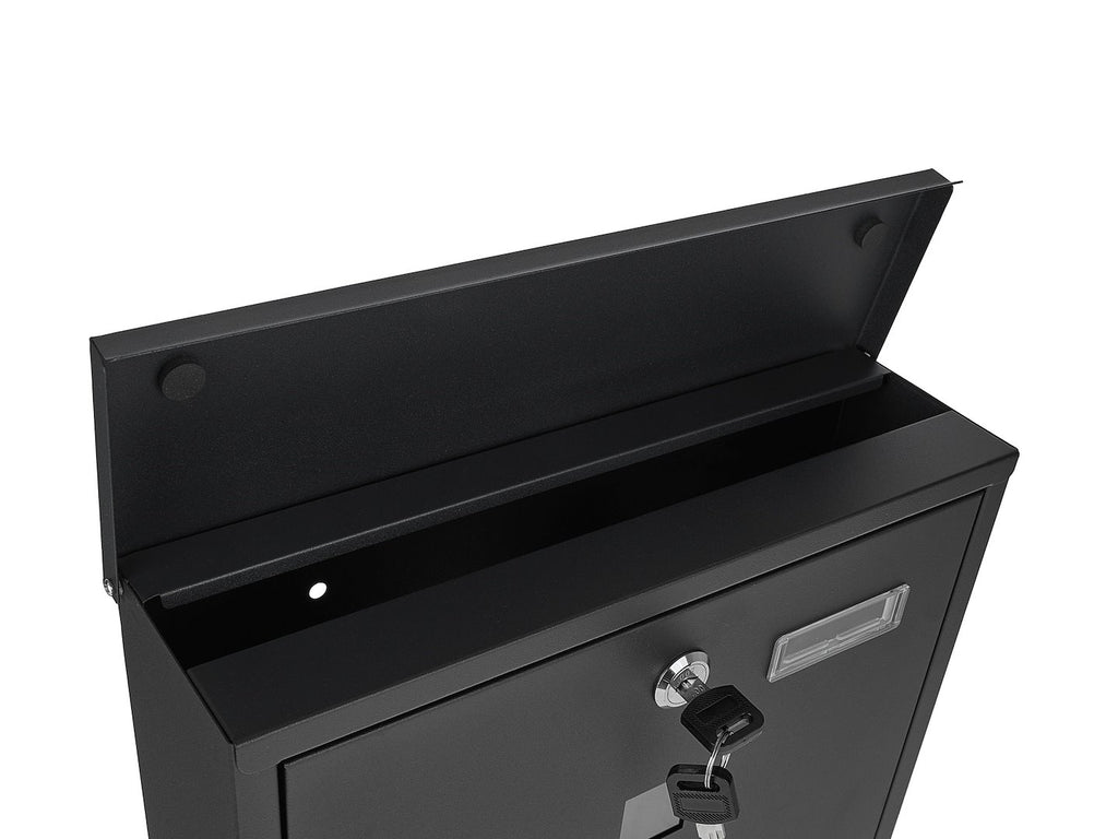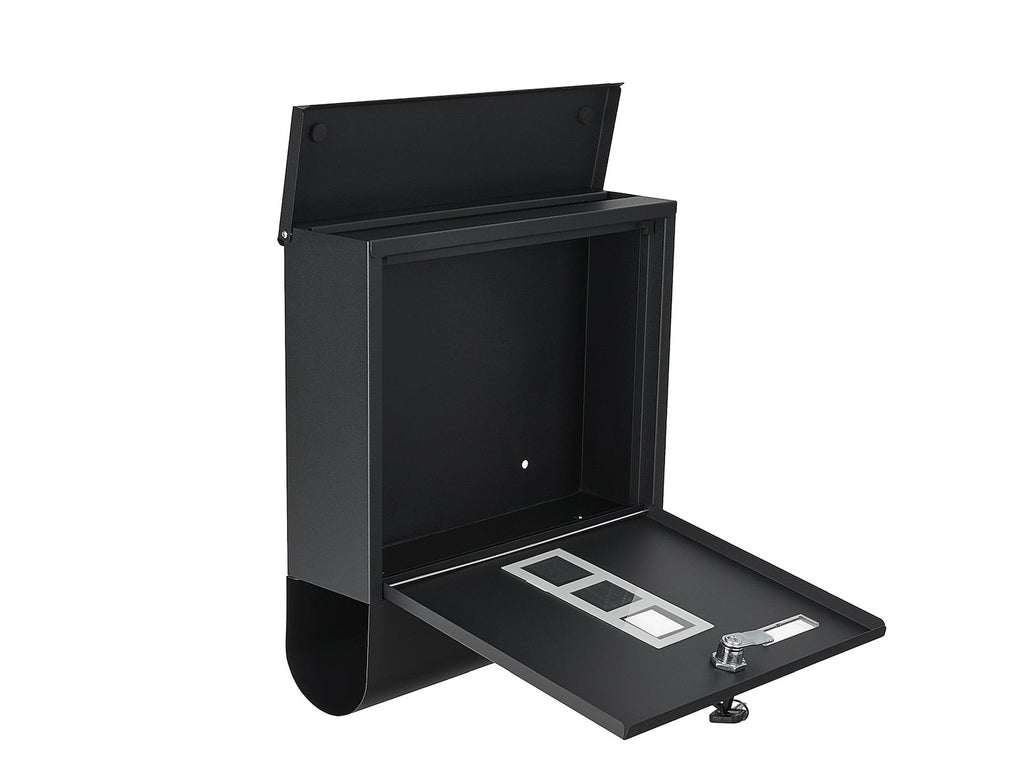 Ez a POSTALÁDA ÚJSÁGTARTÓVAL FEKETE 34×30.7×10 CM porfestett, horganyzott acélból készült, matt fekete felülettel. Védőfedéllel van ellátva, amely megóvja a küldeményeket az esőtől és a hótól, valamint lefedi és védi a levélbedobó nyílást.