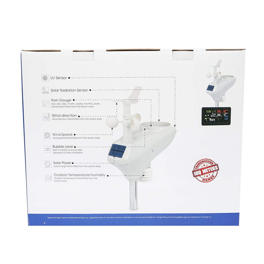 Ez a professzionális, WIFI-kapcsolattal rendelkező meteorológiai állomás ideális választás otthoni, mezőgazdasági vagy ipari felhasználásra. A készülék teljes körű időjárás-ellenőrzést biztosít, beleértve a UV-indexet, napfényt, szélirányt és sebességet, csapadékot, légnyomást, valamint a hőmérsékletet és páratartalmat.