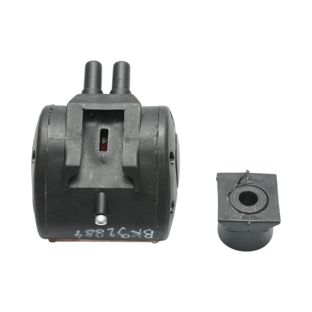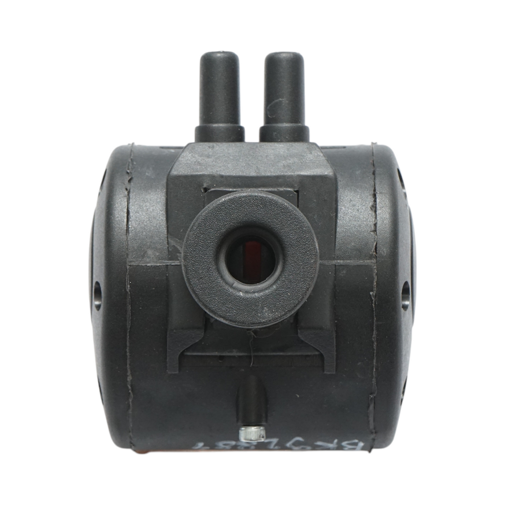 PULZÁTOR TEHÉNFEJŐ GÉPHEZ, 50/50 ARÁNYÚ, BRECKNER GERMANY alkatrész, amely fejőgépekhez készült. A készülék mérete 89,5 x 100 x 83 mm, két darab 9 mm átmérőjű csonkkal rendelkezik, valamint 12,4 mm átmérőjű furattal.