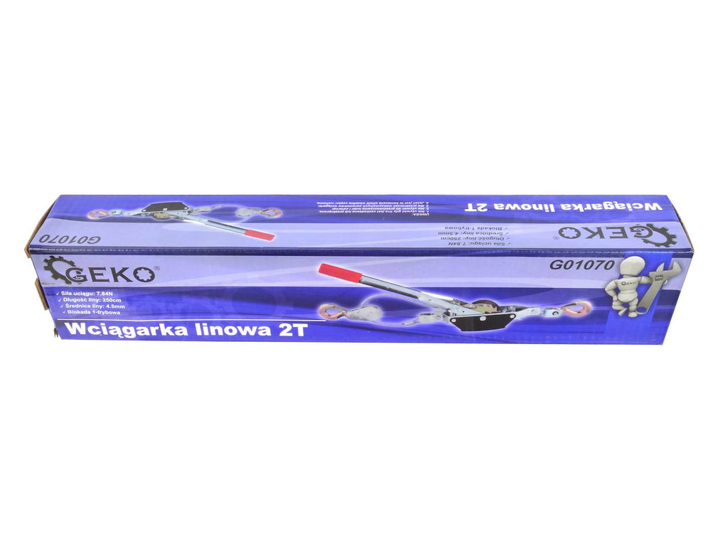 Ez a RACSNIS FESZÍTŐ CSÖRLŐ 2 T GEKO nehéz terhek – például csónakok vagy járművek – kézi mozgatására és húzására szolgál racsnis működtetéssel. Az eszköz 2000 kg maximális terhelhetőséggel rendelkezik, és egyszerű racsnis biztonsági mechanizmussal van ellátva a kontrollált használat érdekében.