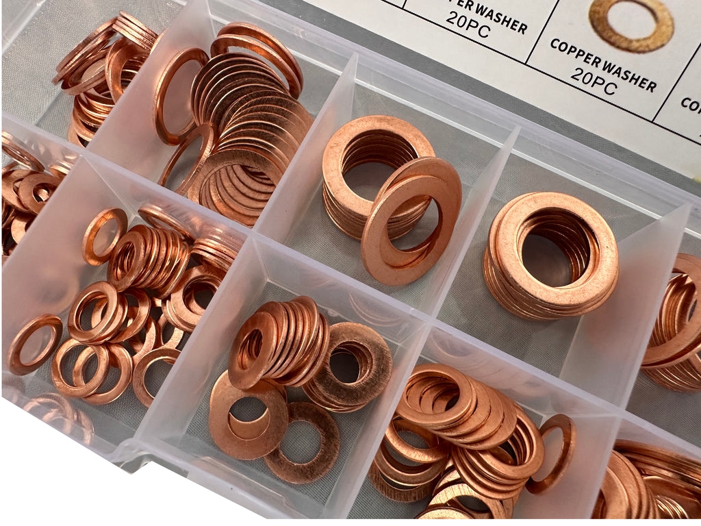 Ez a RÉZ ALÁTÉT KÉSZLET HBM 200 DARAB praktikus és komplett készlet, amely különböző alkalmazásoknál biztosít stabil rögzítést és tömítést. A réz alátétek kiváló hő- és elektromos vezetőképességgel, valamint magas korrózióállósággal rendelkeznek.