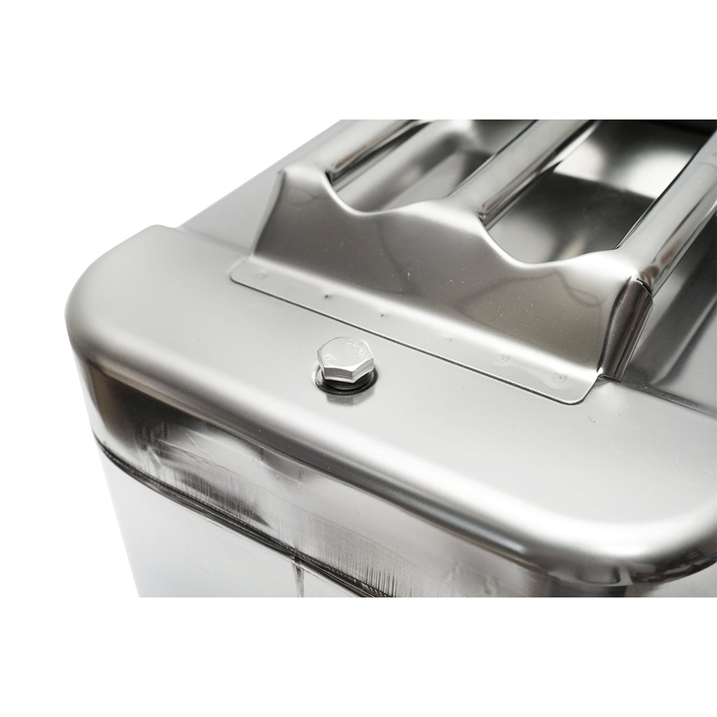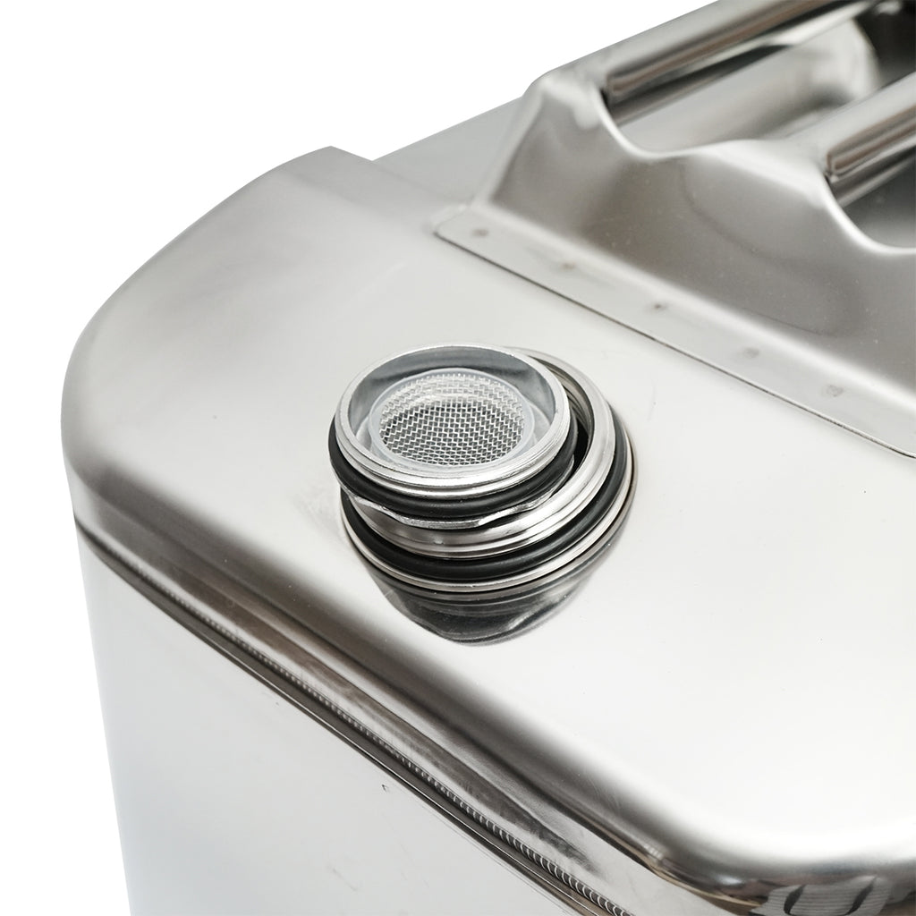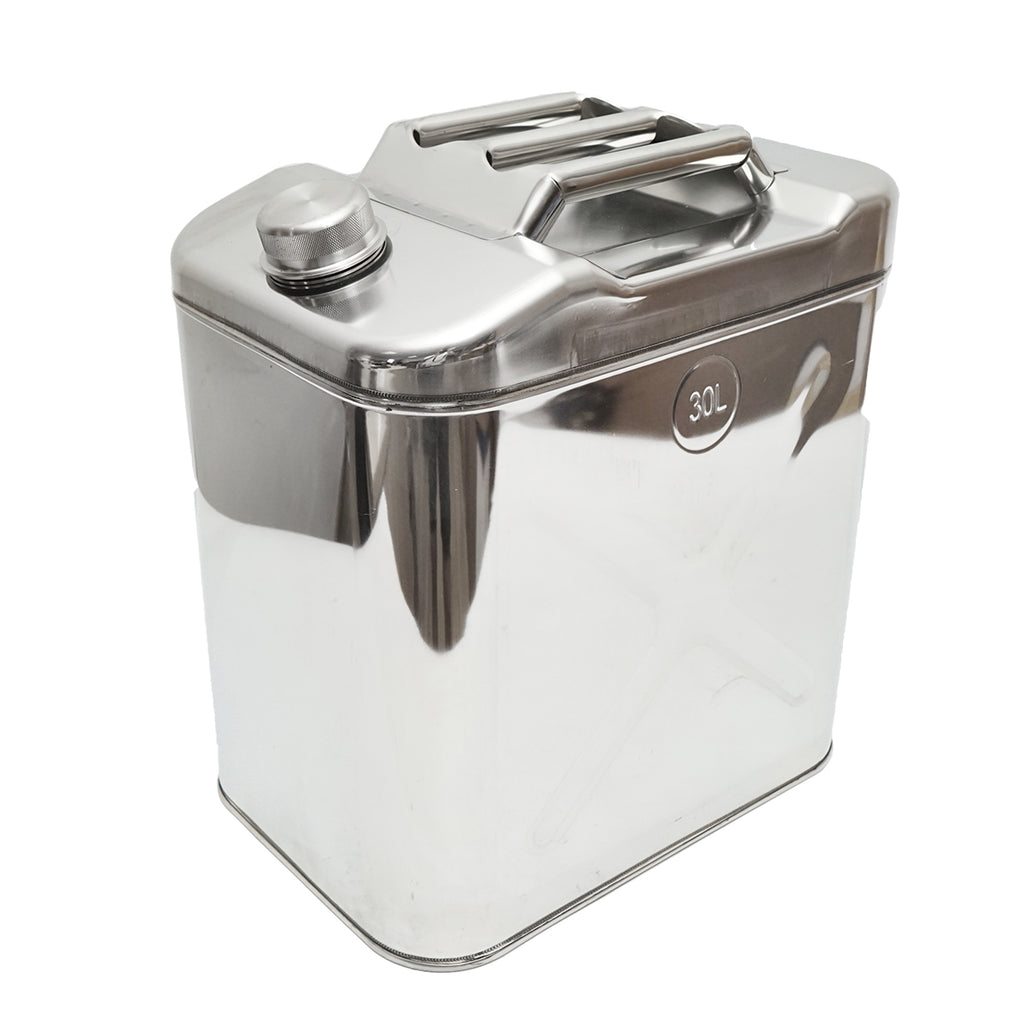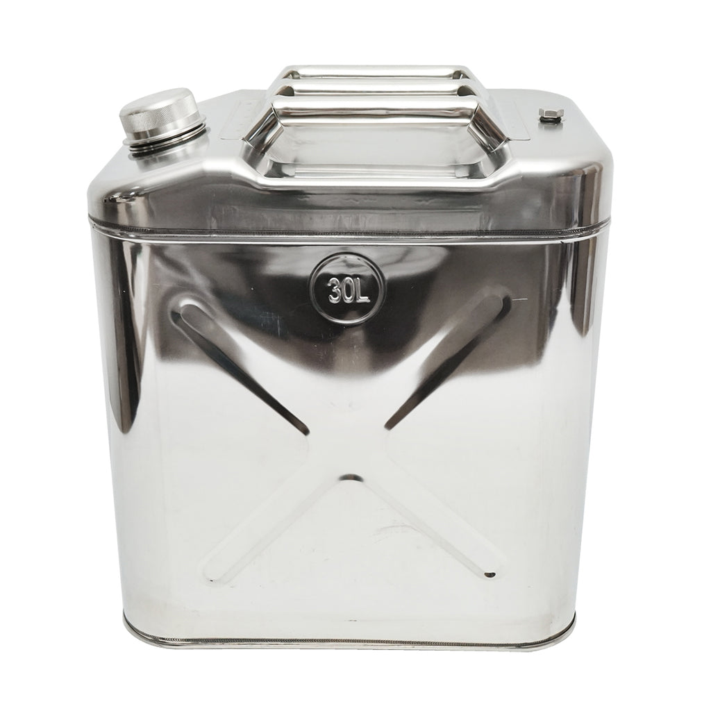 A ROZSDAMENTES ACÉL KANNA RUGALMAS TÖMLŐVEL ÉS KUPAKKAL, 30 L kiválóan alkalmas üzemanyagok és egyéb folyadékok biztonságos tárolására és szállítására. A rugalmas tömlő megkönnyíti a kiöntést, míg a szorosan záródó kupak megakadályozza a szivárgást.