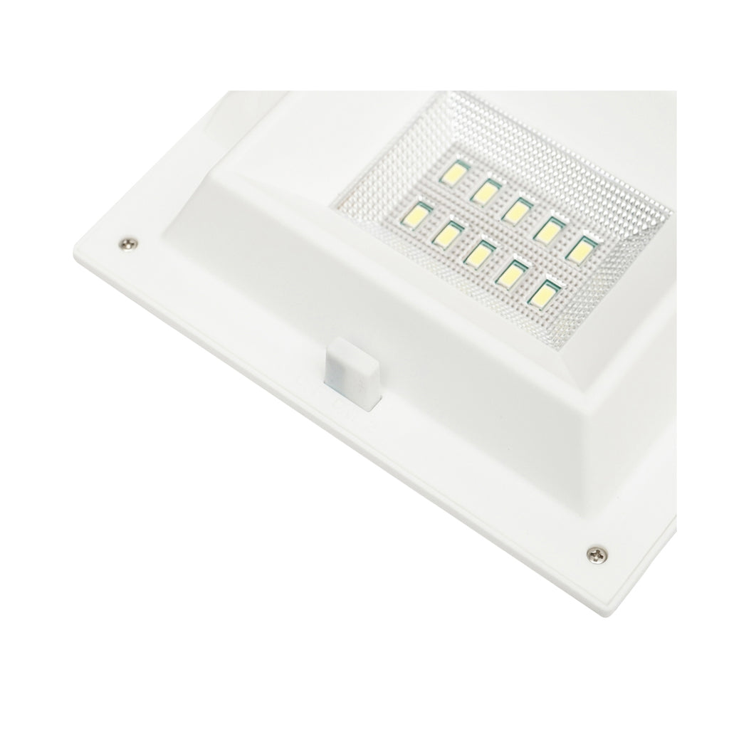 SMD-LED LÁMPA 10X0,5W, MOZGÁSÉRZÉKELŐVEL ÉS 5V / 1.5W NAPELEMMEL, BRECKNER GERMANY kültéri világításra használható. A lámpa 10 db 0,5 W teljesítményű LED-del rendelkezik, amelyek 6500–7000 K színhőmérsékletű fényt bocsátanak ki. A működést 5V/1.5W teljesítményű polikristályos napelem biztosítja, beépített 3.2V/1500mAh akkumulátorral. Az IP44 védettségű kivitel mozgásérzékelővel van ellátva, működési ideje 10–12 óra, töltési ideje 5–6 óra. A fényerő 300 lumen. A ház alumínium és műanyag kombinációjából készült.
