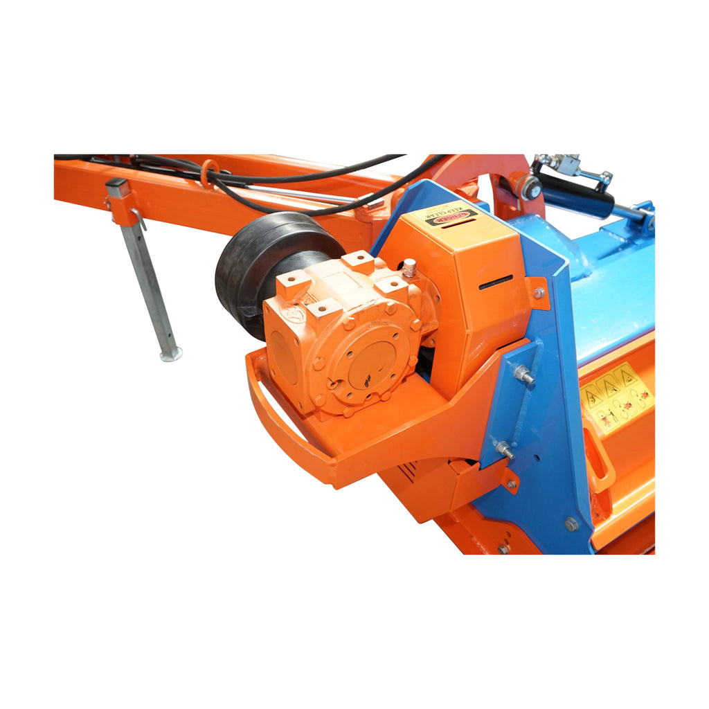 A BCR180 típusú aprítógép oldalrögzítéssel, 50-75 lóerős teljesítménytartományhoz készült, 1780 milliméter munkaszélességgel. A gép hidraulikus elmozdulást tesz lehetővé jobbra-balra, a kar dőlésszöge 60-90 fok között állítható. 28 db kés (kalapács) segíti az aprítást, amely 20-60 milliméter átmérőjű anyagot képes feldolgozni. A kardántengely fordulatszáma 540 pto, és négy darab ékszíjjal működik. A rögzítés hárompontfüggesztéssel történik.