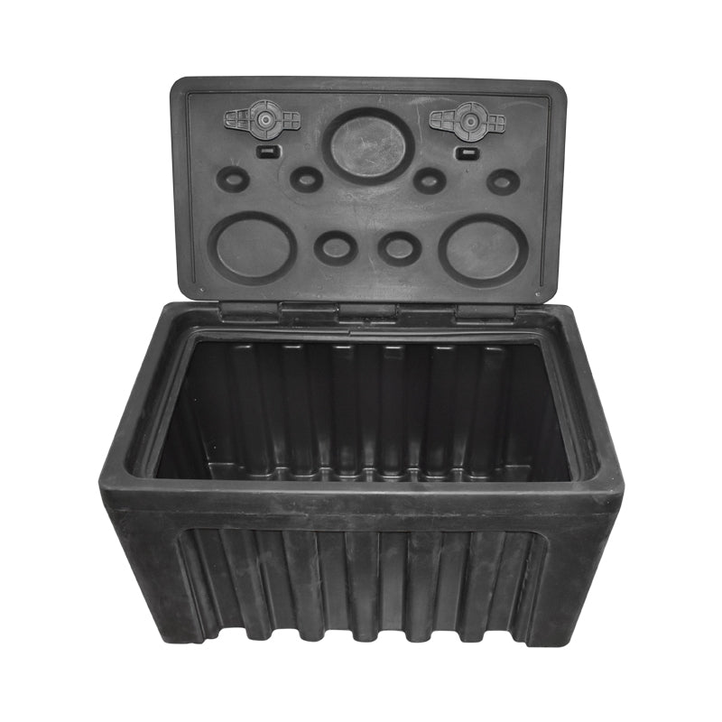 Ez a SZERSZÁMOSLÁDA FEKETE MŰANYAG 460X580X800 MM BRECKNER GERMANY műanyagból készült a kopásállóság érdekében, kulccsal zárható így könnyen és biztonságosan tárolhatóak a különböző szerszámok.