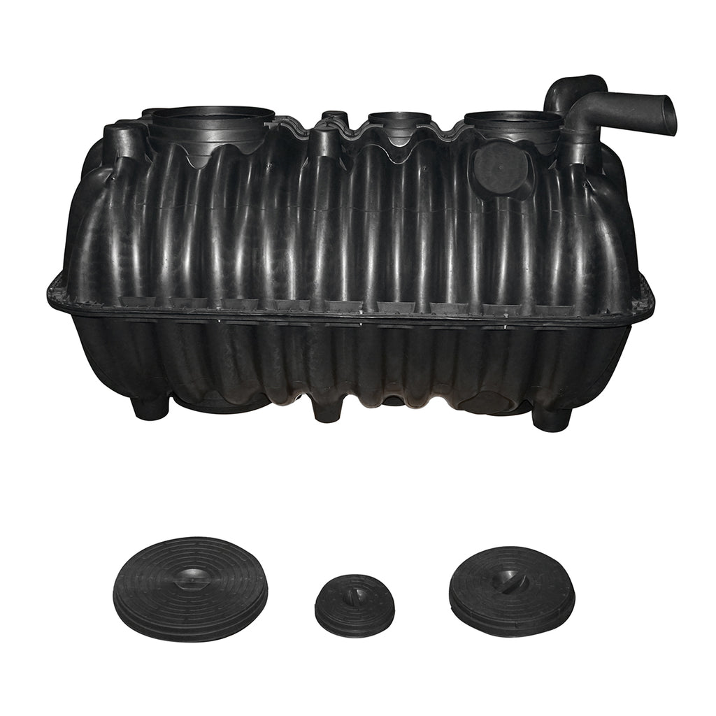 Trikompartimentált, vízszintes kialakítású, vidanjázható szennyvíz tartály 4–6 fős háztartások számára. A 1500 literes kapacitás elegendő a háztartási szennyvíz biztonságos és higiénikus gyűjtéséhez olyan helyeken, ahol nincs közműcsatorna. A tartály anyaga üvegszálas erősítésű PP + PE kompozit, amely garantálja a tartósságot és a korrózióállóságot.