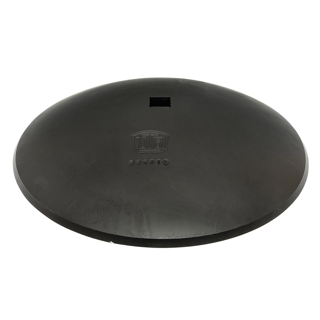 TÁRCSALAP 610X6, 41 MM-ES NÉGYSZÖG sima felületű tárcsa mezőgazdasági talajművelő gépekhez. A tárcsa külső átmérője 610 mm, vastagsága 6 mm. A tengelyfurat négyzet alakú, 41 mm-es mérettel. A sima kialakítás a talaj egyenletes forgatására és lezárására alkalmas munkafázisokban használatos.