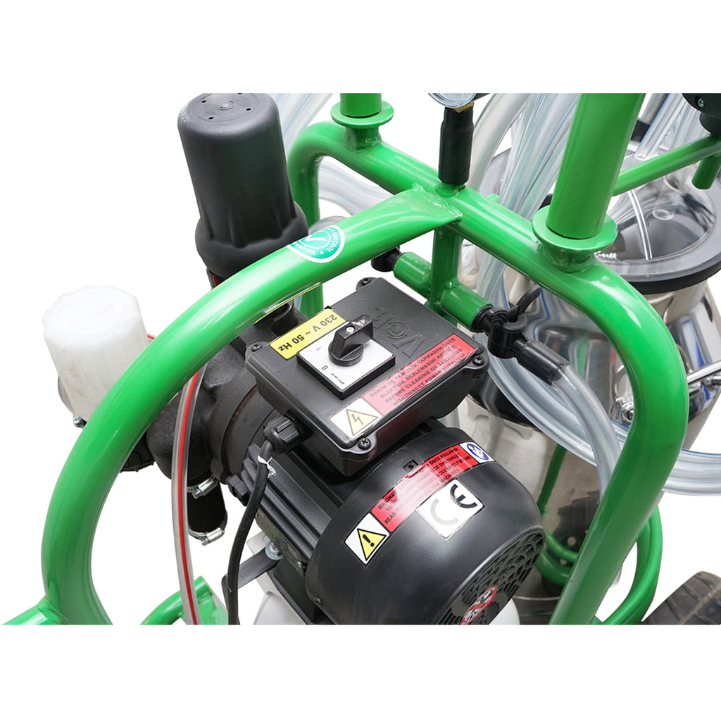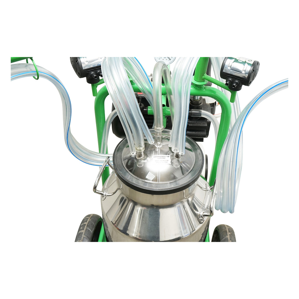 Ez a kétállásos fejőgép rozsdamentes acélból készült 40 literes tejgyűjtő tartállyal és beépített vákuumtartállyal rendelkezik. Az eszköz hatékonyan biztosítja a vákuumot a folyamatos és megbízható fejéshez, ideális közepes méretű tejtermelő gazdaságok számára.