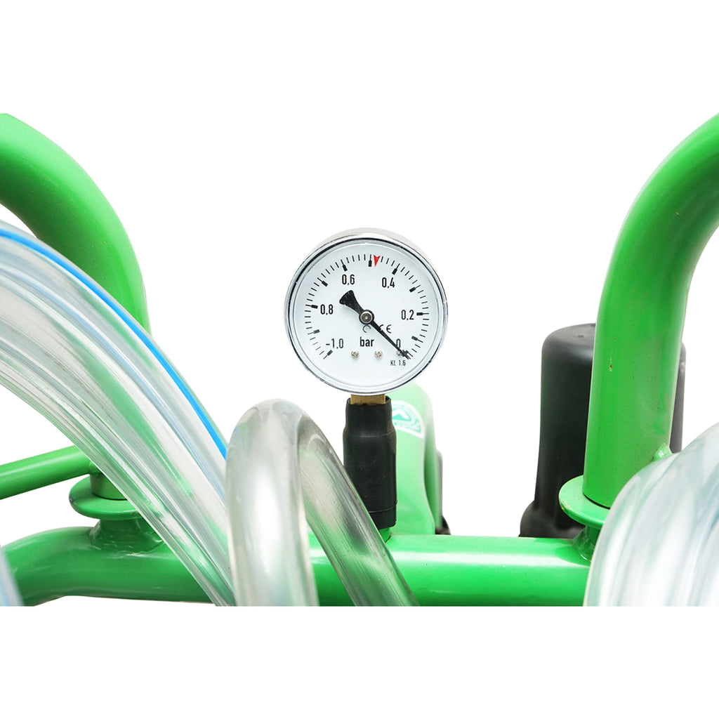 Tehénfejő gép, 2 állásos, 40 literes rozsdamentes acél tartállyal, vákuumtartállyal és nyomáskiegyenlítő palackkal, Breckner Germany