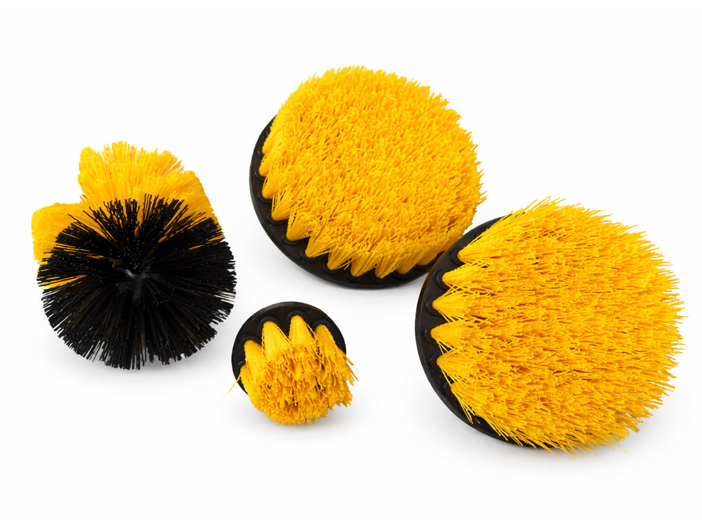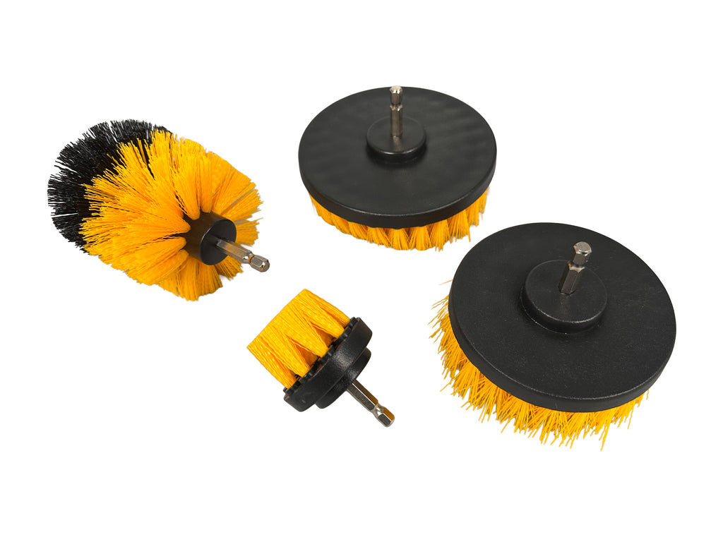 Ez a TISZTÍTÓ KEFE KÉSZLET FÚRÓGÉPHEZ 4 DB fúrógépekkel és akkumulátoros fúrókkal való használatra készült. A készlet 4 darab tisztítókefét tartalmaz, 6,3 mm-es QUICK CHANGE szárral, amely kompatibilis a legtöbb fúrógéppel. A csomag 3 darab kerek kefét és 1 darab forgókefét foglal magában, 5 cm, 10 cm, 12 cm és 8,9 cm átmérőkkel. A kefék közepes keménységű polipropilénből készültek, és különböző felületeken használhatók anélkül, hogy karcolást okoznának. A fúrógép nem tartozék.