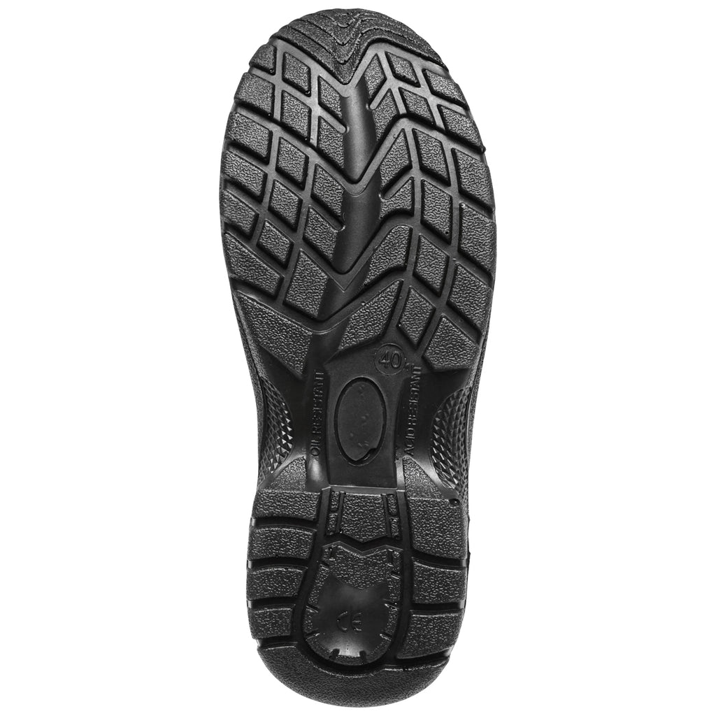 VÉDŐBAKANCS, 40-ES MÉRET, ACÉL LÁBUJJVÉDŐVEL ÉS TALPLEMEZZEL, TÍPUS: 5001 acél orrmerevítővel és acél talpbetéttel ellátott védőbakancs, amely 200 Joule ütközési energiáig nyújt védelmet, és fém talplemezének köszönhetően átszúrásálló. Talpa nagy sűrűségű anyagból készült, sarokrésze ütéscsillapítóval ellátott. Az antistatikus és csúszásmentes talp ellenáll olajoknak, üzemanyagoknak és vegyi anyagoknak.