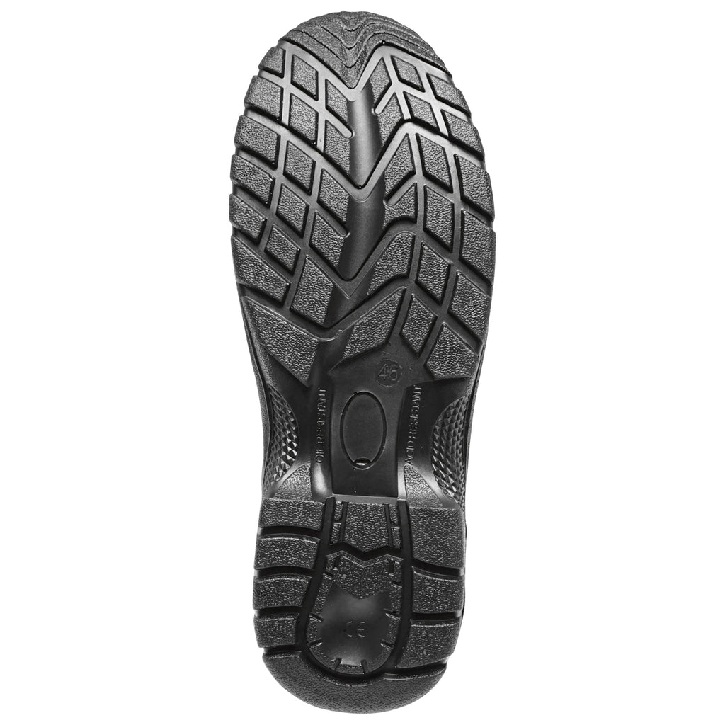 VÉDŐBAKANCS, 46-OS MÉRET, ACÉL LÁBUJJVÉDŐVEL ÉS TALPLEMEZZEL, TÍPUS: 5001 acél orrmerevítővel és acél talpbetéttel ellátott védőbakancs, amely 200 Joule ütközési energiáig nyújt védelmet, és fém talplemezének köszönhetően átszúrásálló. Talpa nagy sűrűségű anyagból készült, sarokrésze ütéscsillapítóval ellátott. Az antistatikus és csúszásmentes talp ellenáll olajoknak, üzemanyagoknak és vegyi anyagoknak.