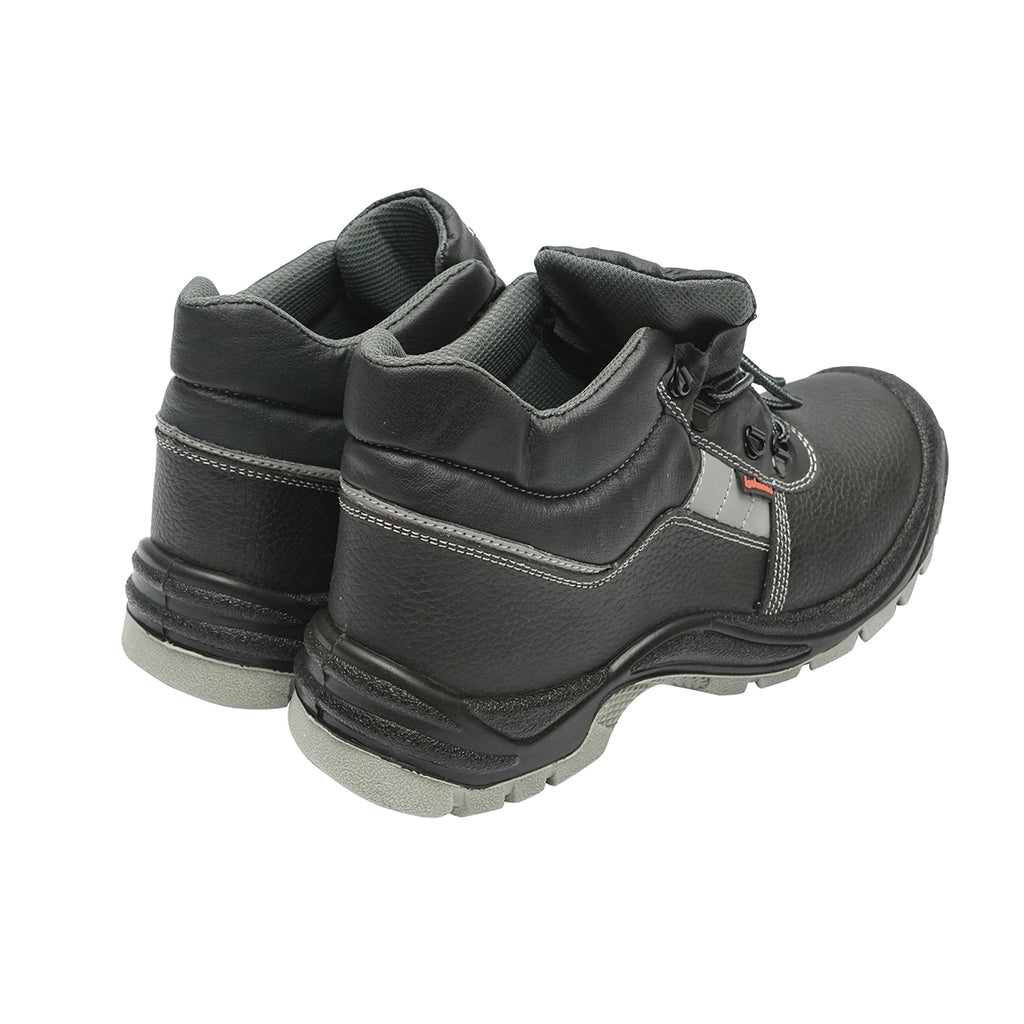 VÉDŐBAKANCS, 46-OS MÉRET, ACÉL LÁBUJJVÉDŐVEL ÉS TALPLEMEZZEL, TÍPUS: 5003 acél orrmerevítővel és acél talpbetéttel ellátott védőbakancs, amely 200 Joule ütközési energiáig nyújt védelmet, és fém talplemezének köszönhetően átszúrásálló. Talpa nagy sűrűségű anyagból készült, sarokrésze ütéscsillapítóval ellátott. Az antistatikus és csúszásmentes talp ellenáll olajoknak, üzemanyagoknak és vegyi anyagoknak.