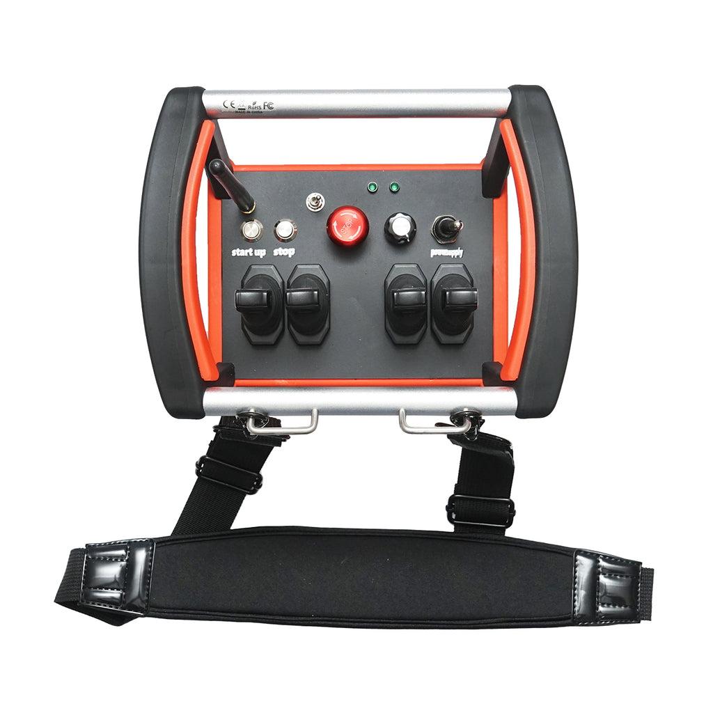 A Breckner Germany által gyártott vezeték nélküli ipari távirányító 4 vezérlőgombbal és DC 24V tápfeszültséggel működik, ideális különféle hidraulikus, elektromos vagy gépvezérlő rendszerek távoli irányításához. A masszív, IP65 védettségű ház biztosítja a készülék por- és fröccsenő víz elleni védelmét, míg a 1000 méteres hatótávolság lehetővé teszi a kényelmes és biztonságos működtetést akár nagyobb távolságból is.
