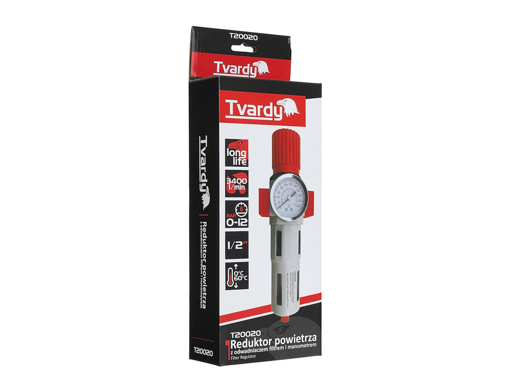 A VÍZLEVÁLASZTÓ NYOMÁSSZABÁLYOZÓVAL 1/2" TVARDY sűrített levegős rendszerekhez, kompresszorokhoz és pneumatikus berendezésekhez készült, a levegő tisztítására és nyomásának szabályozására.